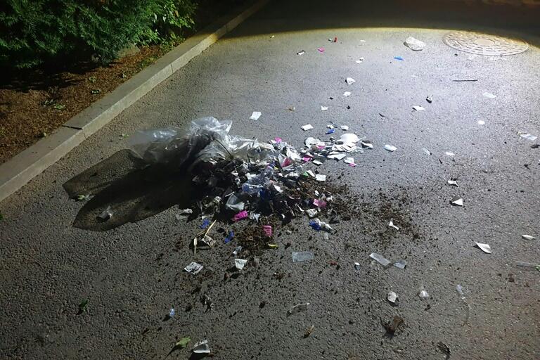 法新社报导,南韩媒体分享的照片显示,北韩空飘而来的白色气球爆开,里头装有满是垃圾及显然是排泄物的袋子。南韩军方痛批,平壤当局此举是「低级」的噱头。
