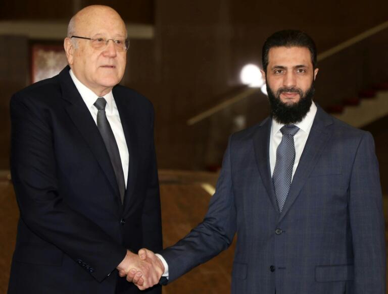 (法新社大马士革11日电) 叙利亚实质领导人夏拉(Ahmed al-Sharaa)今天在首都大马士革会晤黎巴嫩看守总理米卡提(Najib Mikati),试图改善双方之间的长期紧张关系。