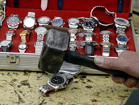 周二上午,有关部门象征性地在弗里堡州(Friburg)销毁了28427只假冒手表和4130张盗版DVD。