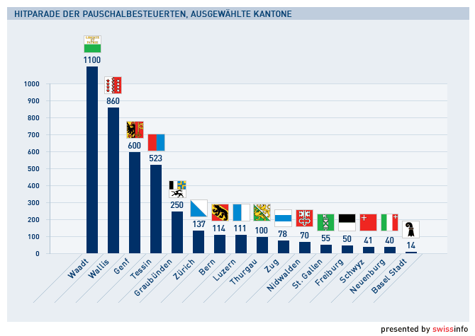 不仅是公司,富有的个人也愿意迁入瑞士,因为只要不在瑞士工作,其所遵循的综合性税制(Pauschalsteuer),就可让这些富翁享受税收优惠。
