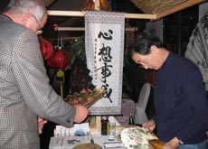 19点整,别开生面的中国传统文艺节目开始表演。有古筝、琵琶合奏,顶技,耍剑,四川剧等,形式多样,异彩纷呈,赢得了在场中外宾客的阵阵掌声。大厅内,还有专门从中国邀请来的文化名人和民间艺人,有的手拿剪刀现场剪纸,有的挥毫泼墨现场书法,还有的捏泥人,看手相。八仙过海,各显神通。