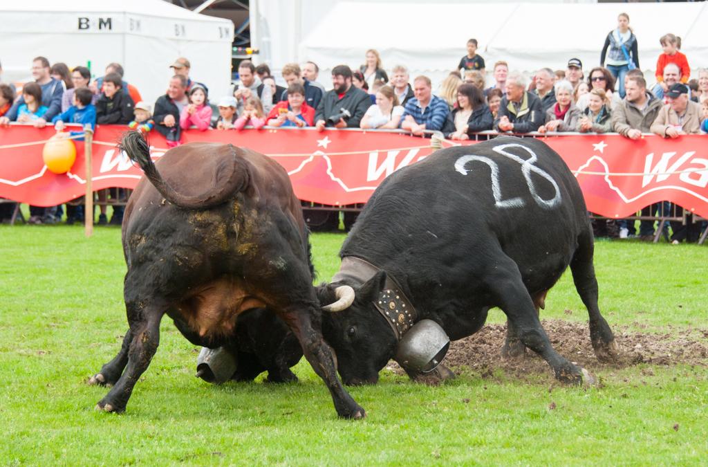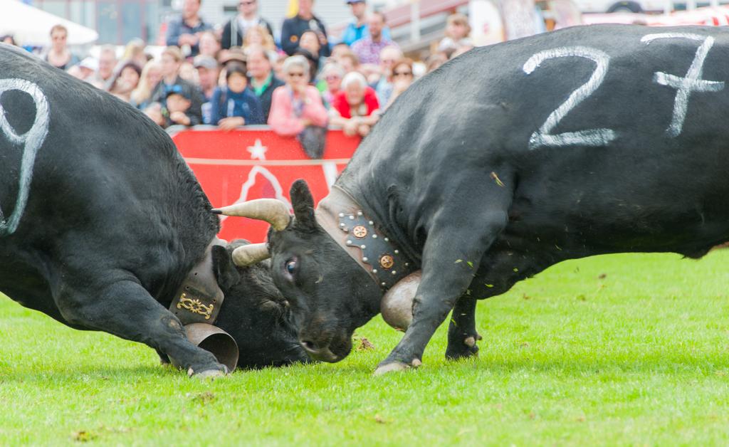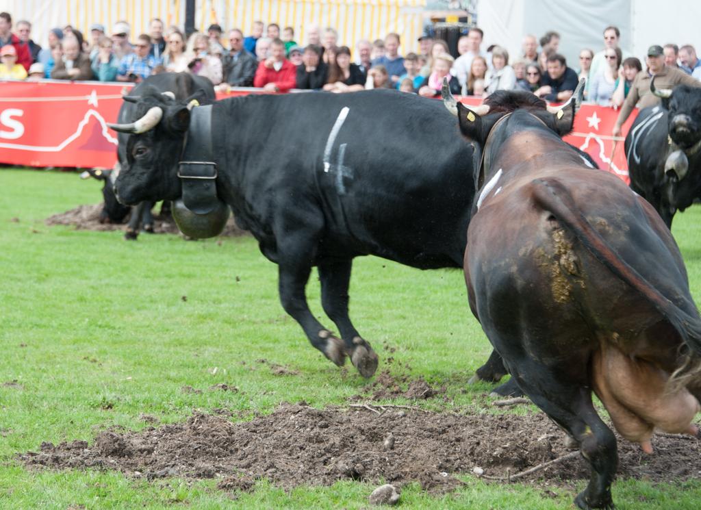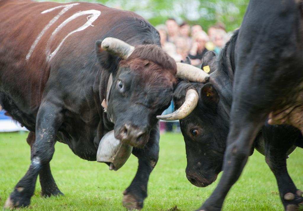 埃尔林根母牛分布在瑞士各个州,以其味道鲜美的肉制品和牛奶而出名,然而只有瓦莱州的具有好斗的品性,所以,斗牛也因此成为当地一种传统。每年最大的女王争夺战在瓦莱州的Aproz举行,今年瓦莱斗牛日期安排请点击这里(法)外部链接,最大决赛于5月9-10日举行。