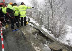 他们必须从出事地点利用绳索下到150米以下山谷中旅游车坠落的河床上进行救护。直升飞机将第一位受伤者就上来之后,中午时分就因恶劣的天气状况不得不停止飞行。