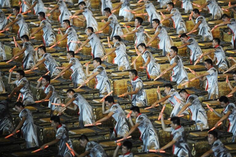 2008名鼓手在鸟巢体育馆气势磅�R击鼓,彷佛成为这个崛起中的国家崭露头角的派对。