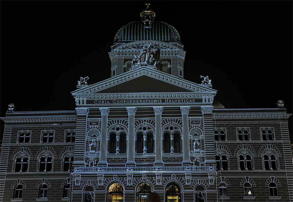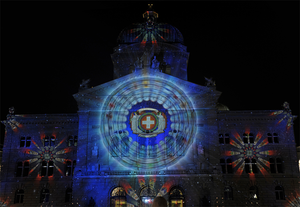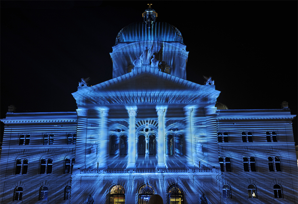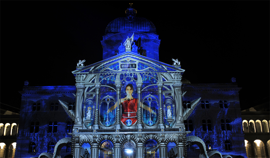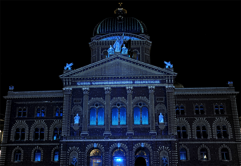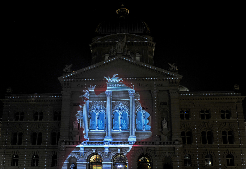 以“相约国会大厦”为主题的灯光表演,被媒体形容为“跨越瑞士的印象之旅”,它运用专业的灯光投影技术,在国会大厦的主墙上投射出神奇的三维动画效果。每次“惊艳”出场都吸引众多行人驻足观看,观者无不发出惊叹之声。(图:瑞士资讯swissinfo.ch,邵大海)