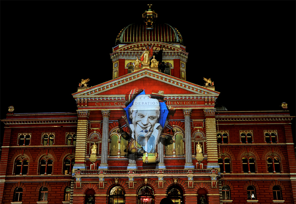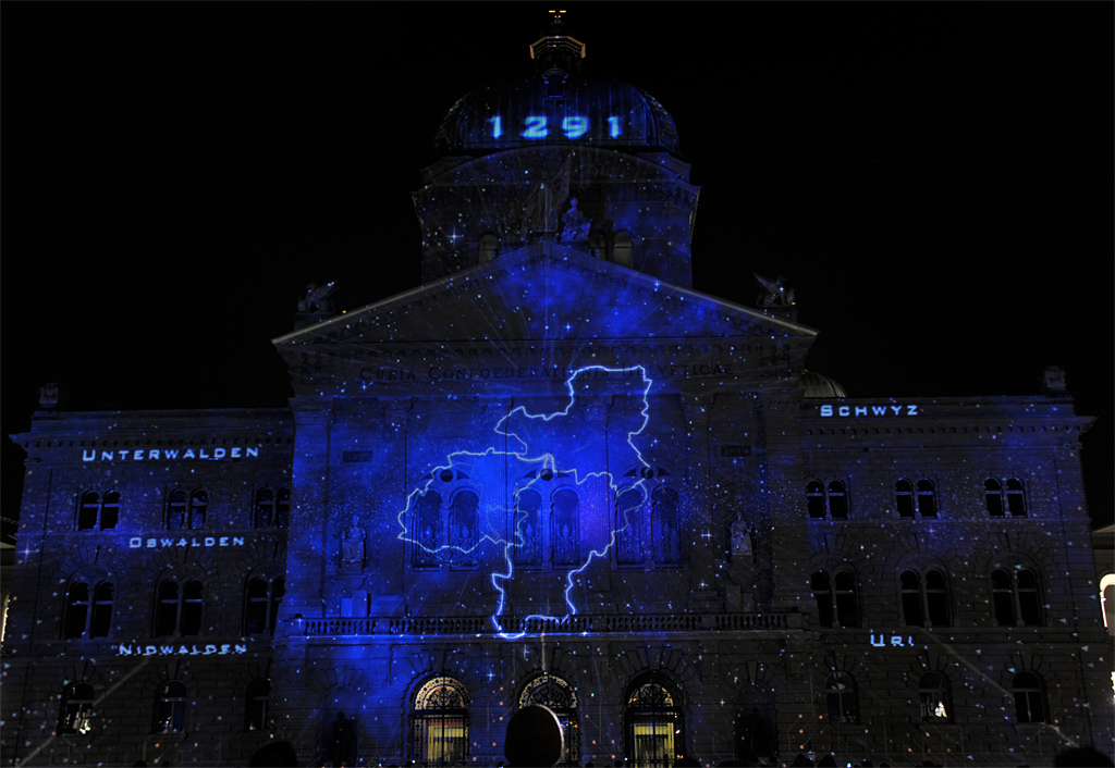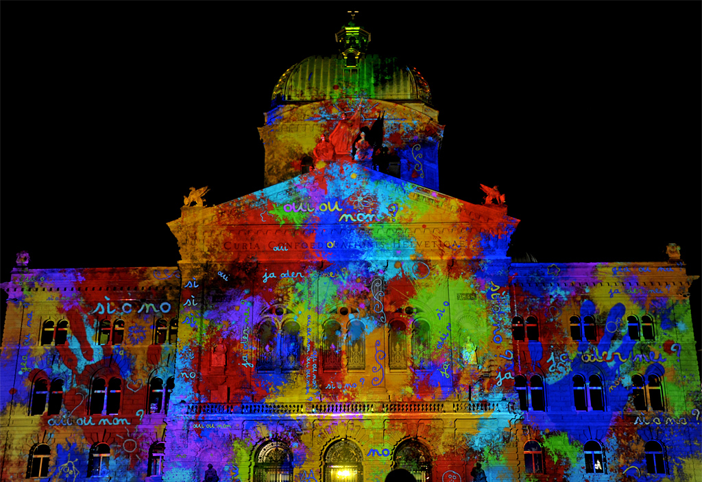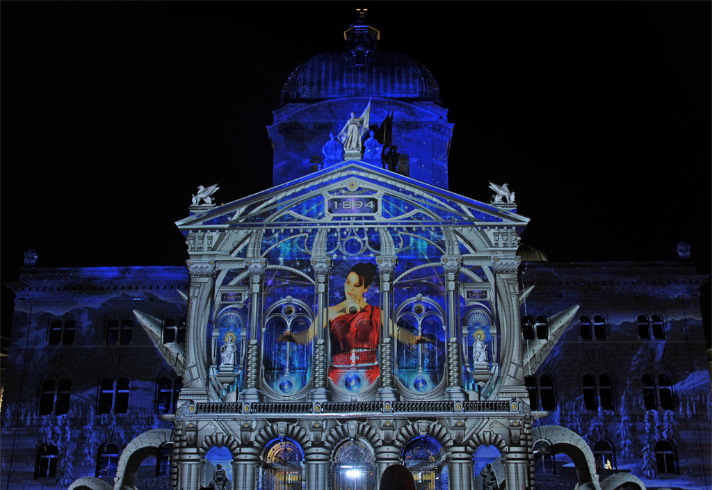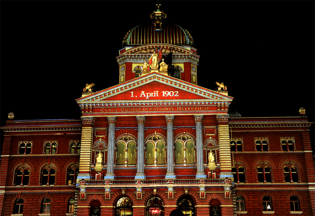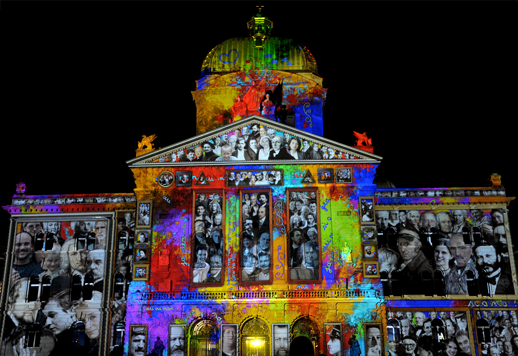 以“相约国会大厦”为主题的灯光表演,被媒体形容为“跨越瑞士的印象之旅”,它运用专业的灯光投影技术,在国会大厦的主墙上投射出神奇的三维动画效果。每次“惊艳”出场都吸引众多行人驻足观看,观者无不发出惊叹之声。(图:瑞士资讯swissinfo.ch,邵大海)
