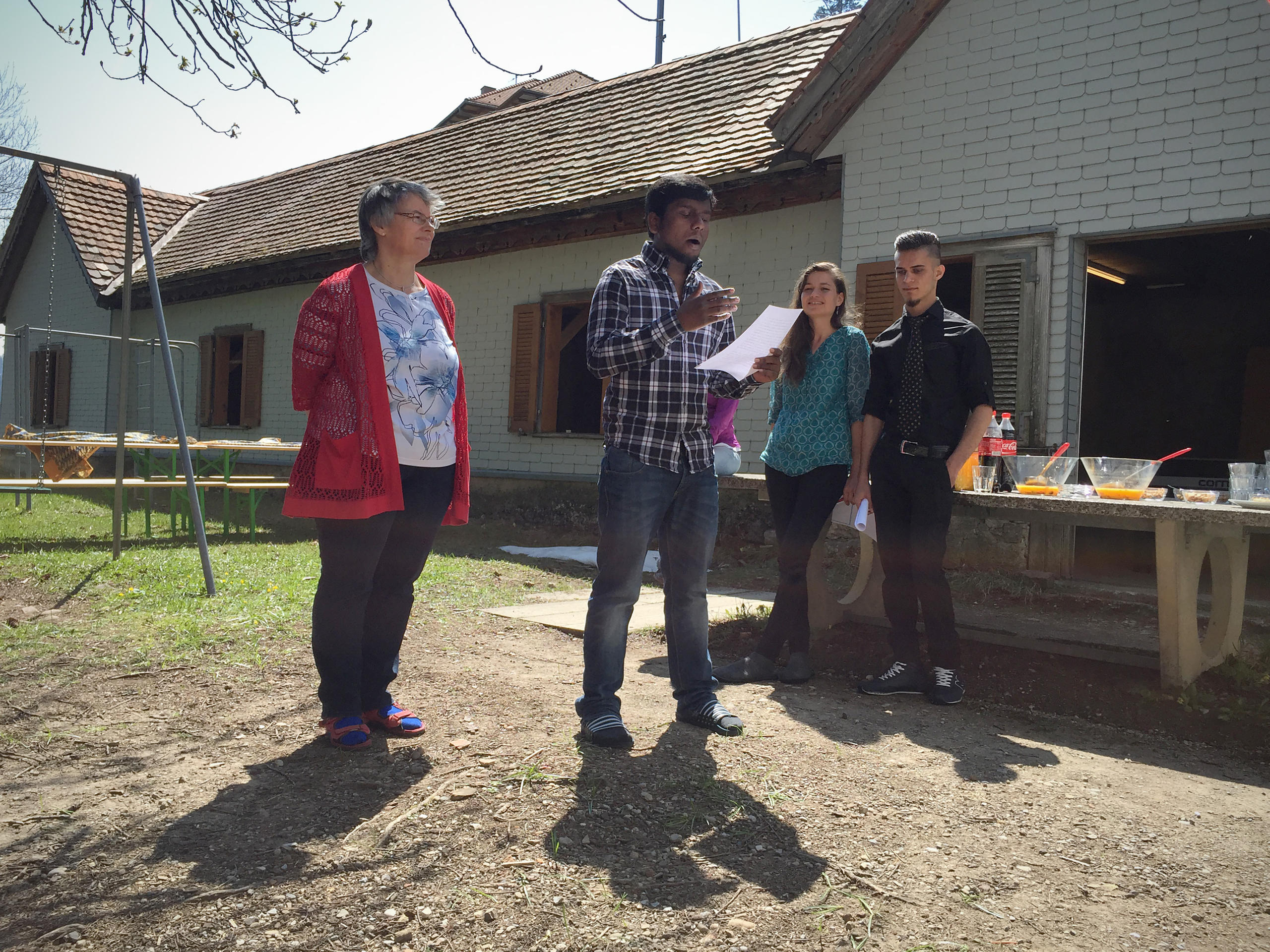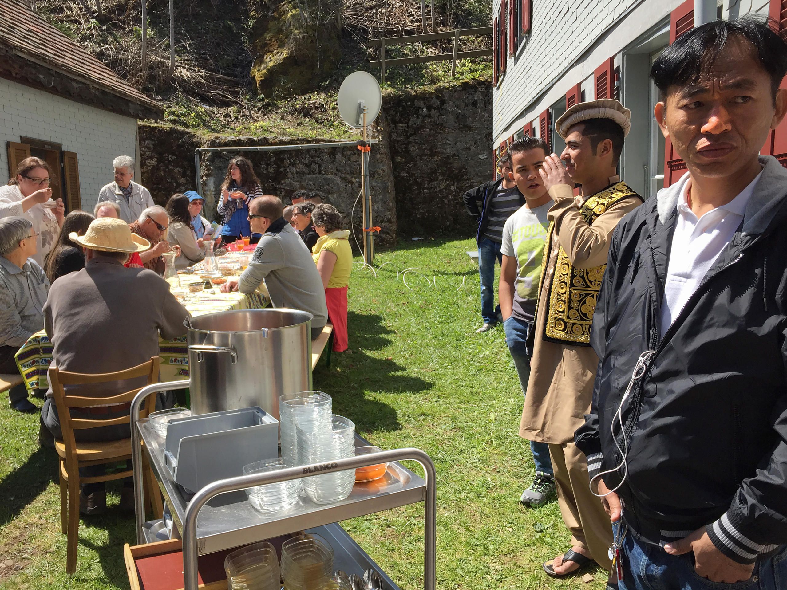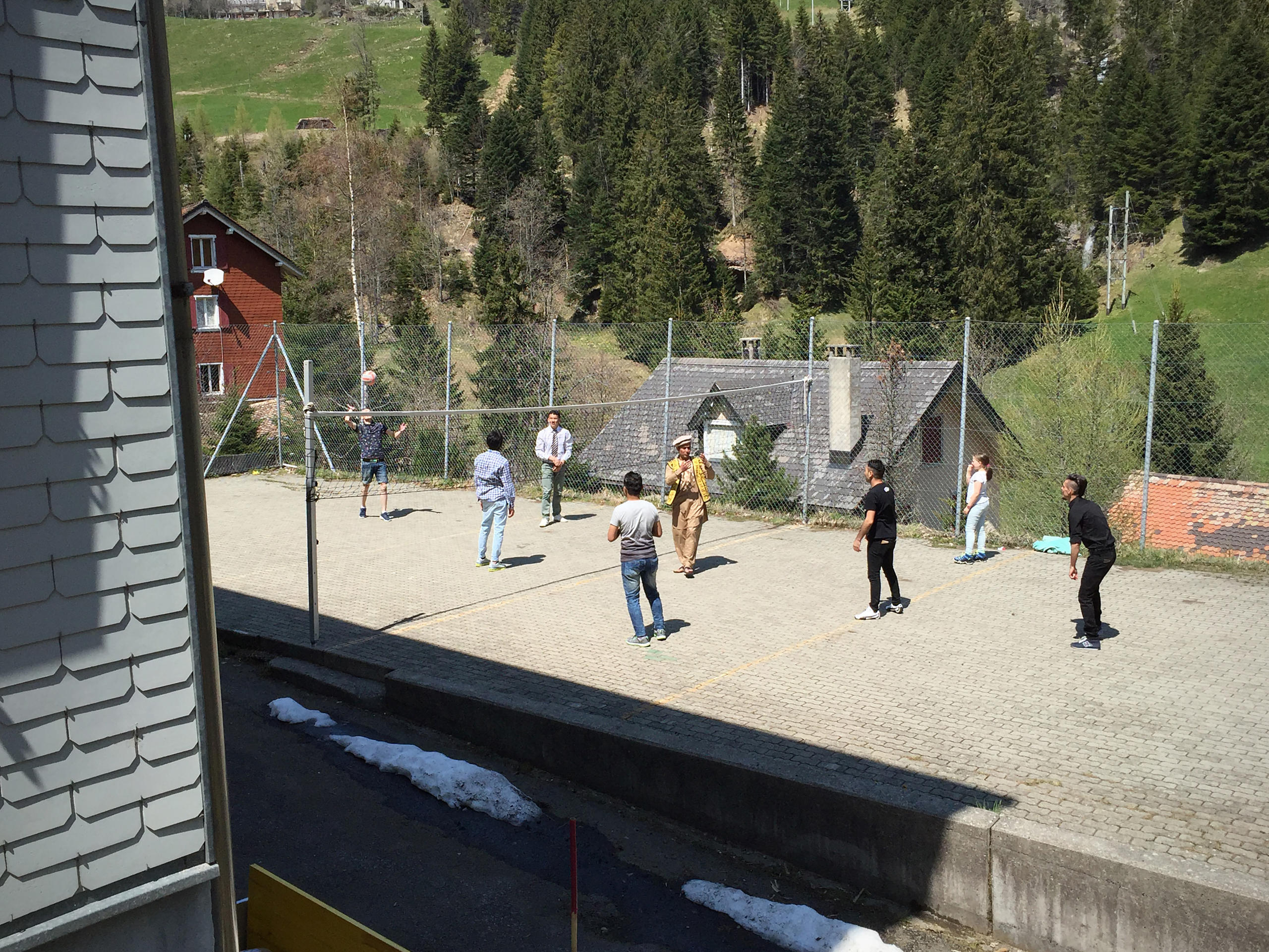 他们都是寻求庇护的难民,多数来自斯里兰卡、阿富汗和伊朗,如今被安置在这个偏僻之处,参加为期三个月的瑞士生活强化课程,同时等候难民申请是否获批的通知。这座宅院通常被用来接待滑雪团体和各种营会,现在则接纳了多至50位难民。然而当这个消息传出,立时引起一些反对呼声。
