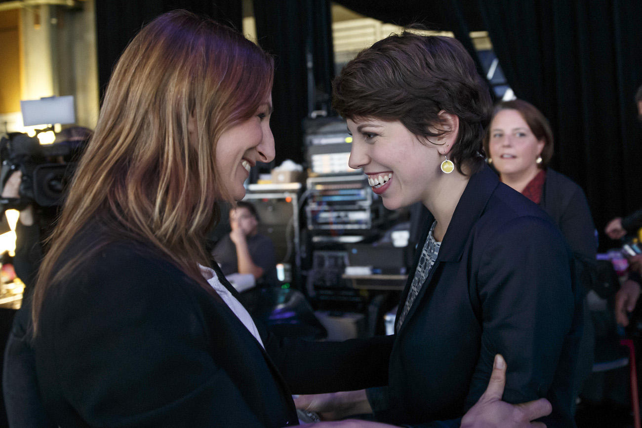 2019年10月20日的联邦大选过后,瑞士议会里将出现更多的女性议员。女性政治家为此而欣喜-这里是绿党的两位年轻女议员Adele Thorens (左)和Lisa Mazzone。 Keystone / Salvatore Di Nolfi