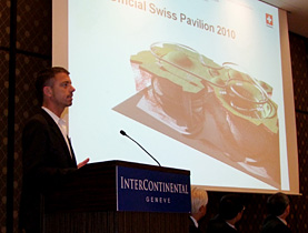 在周一的新闻发布会上瑞士日内瓦市长Manuel Tornare,外交部秘书长Roberto Balzaretti,中国驻瑞士大使馆董津义大使和中国常驻世贸组织孙振宇大使等都到场发表了讲话。瑞士、中国两国媒体就世博会的组织和瑞士馆的建造等话题提问踊跃。会后很多人表示:明年一定要到上海看世博!