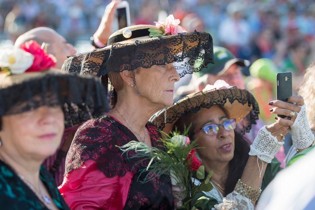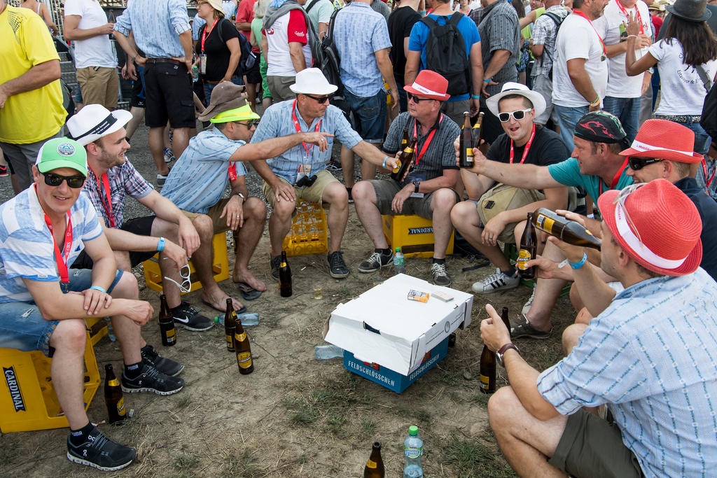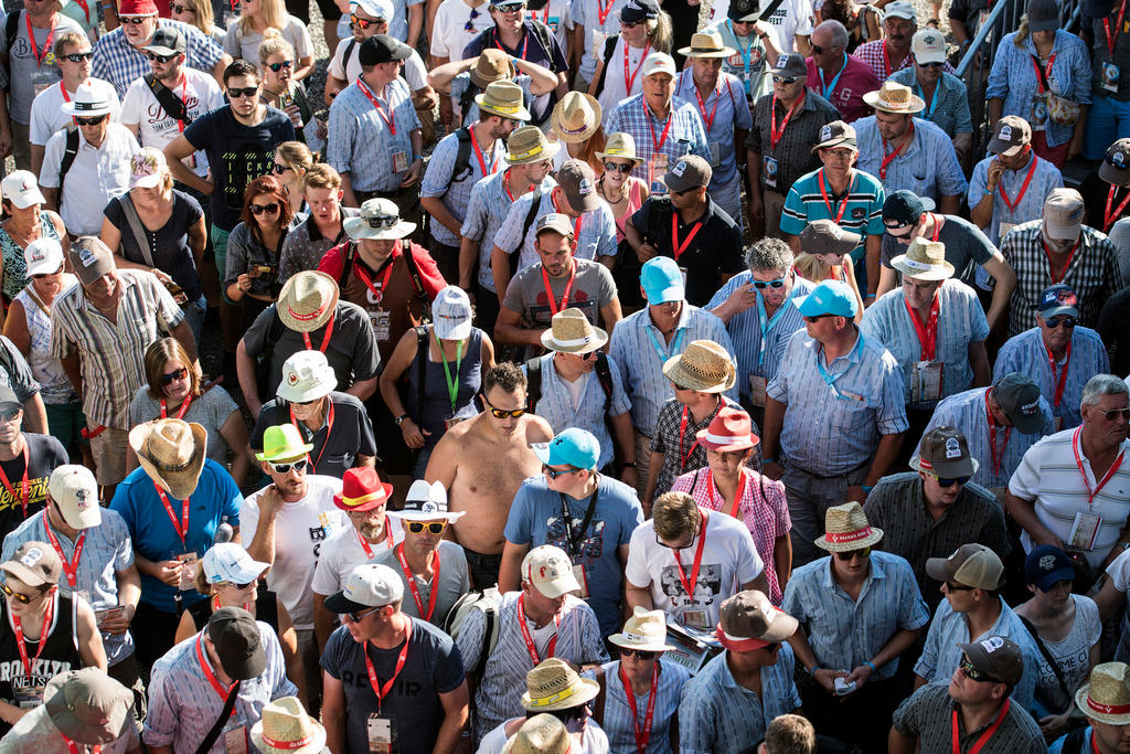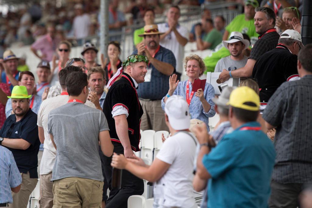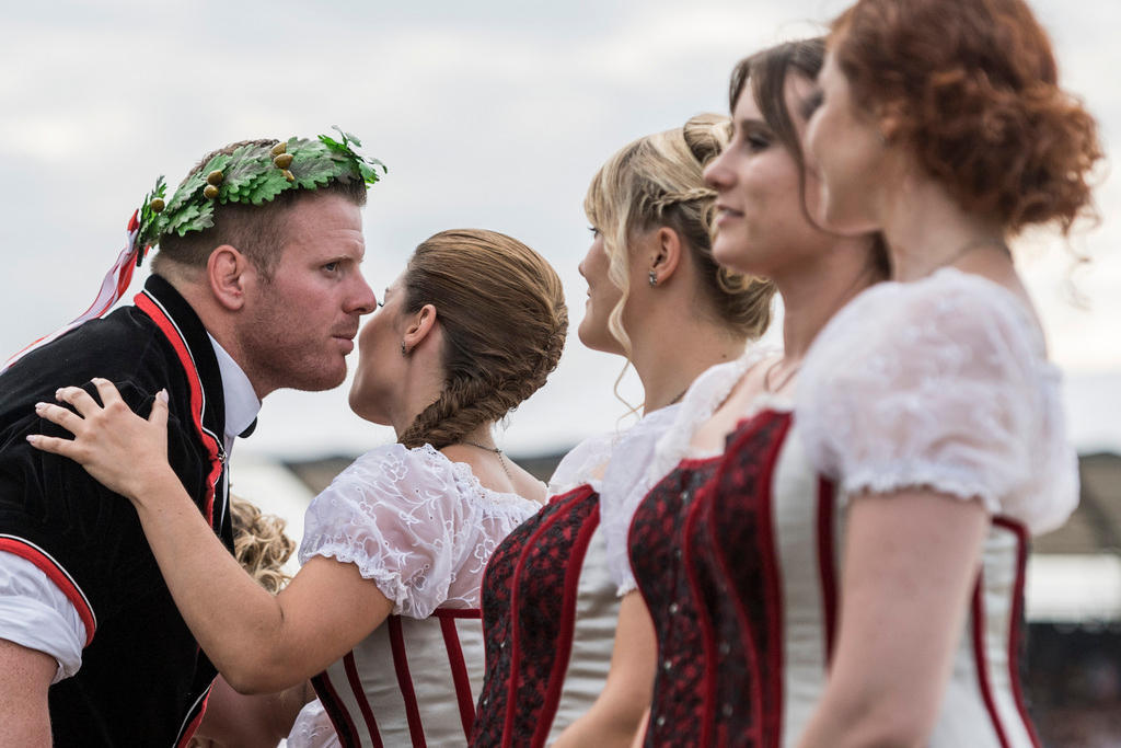 摔跤节举办的上周末大多时间天气炎热,气温有时超过了30°C,如此节日上的太阳帽、墨镜、啤酒需求量大增也就不足为怪了。在广阔的比赛场地,身着传统服饰的女人和女孩,还有男人们,他们嬉闹玩耍,尽情欢乐。但是,这里并非只有摔跤选手在锯末上的挥汗争斗,另外还有舞旗手,投石手也在比赛。
