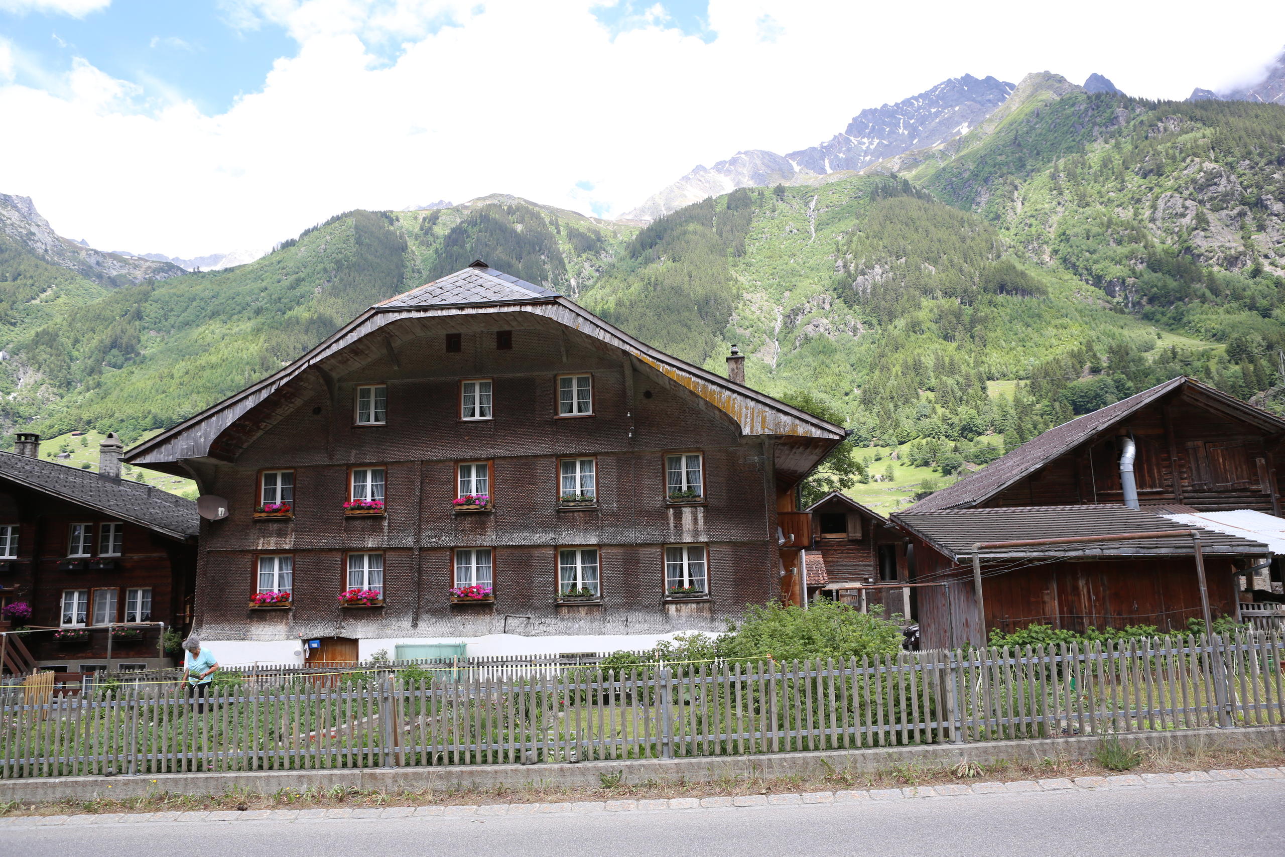窗台上摆满天竺葵的传统木屋、流淌着清泉水的喷泉、草场上专心“贴膘”的牛群、从阿尔卑斯山直流而下的小溪… 古坦嫩-这座位于去往格里姆瑟尔山口(le col du Grimsel)必经之路上的村庄,就是这么一座明信片上经常可见的典型瑞士山村。