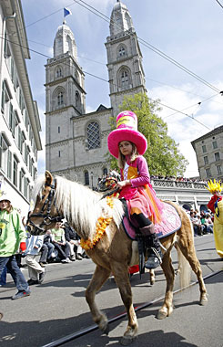4月19日,在传统迎春节-六鸣节(Sechseläute)的前一天,苏黎世按照古老风俗在市内举行儿童游行。2000多名盛装的儿童参加了当天的游行。