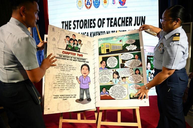 (法新社马尼拉24日电) 在菲律宾与中国于南海这条战略水道的紧张局势加剧之际,菲律宾政府今天推出一本漫画书名为「胡恩老师说故事」,主张其在南海的主权。