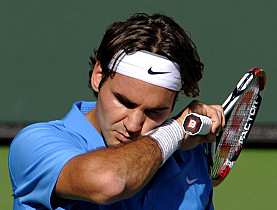 瑞士网球天王罗杰·费德勒在印第安维尔斯大师赛上败给美国选手Mardy Fish,这是今年的第一场大师赛,费德勒以6:3、6:2比分明显失利败阵。
