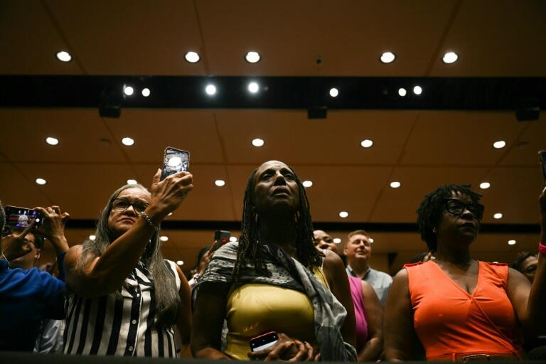 (法新社马里兰州拉哥15日电) 激动群众今天聚集在华府郊外一所社区学院体育馆,他们本应为白宫稍早声明达成的药价调降协议欢呼,但参加集会的民主党支持者们更期待为总统候选人贺锦丽庆祝。