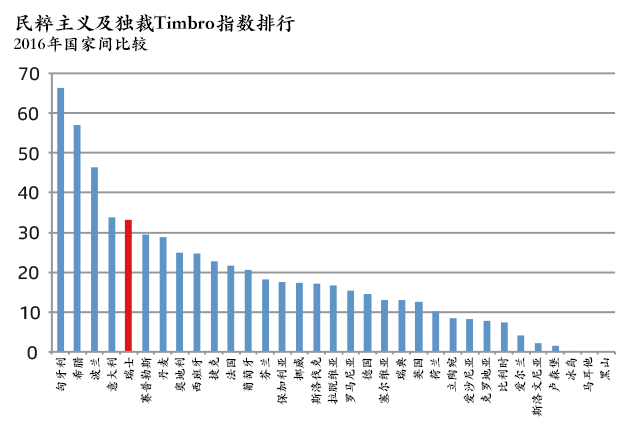 匈牙利、希腊和波兰是欧洲权威民粹主义的“三甲”。瑞士继意大利之后排名第五。这是瑞典Timbro研究所对33国测评之后得出的结果。