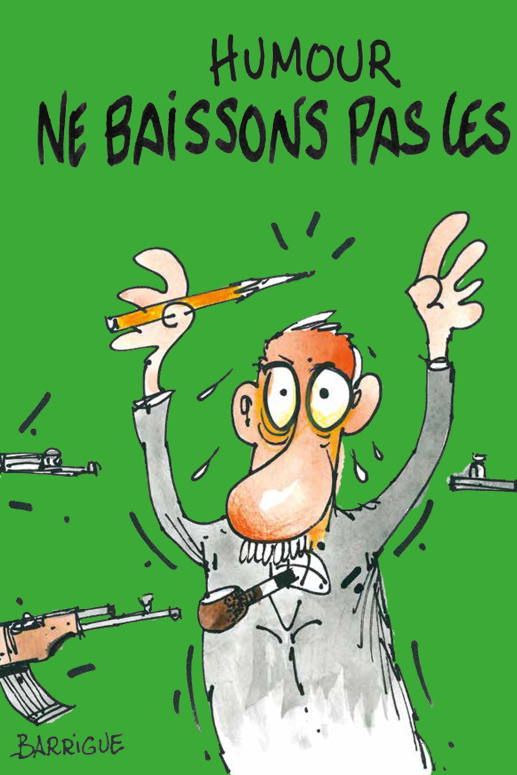 2015年1月7日,法国讽刺杂志《查理周刊》十数位编辑部成员倒在恐怖分子的枪口之下。瑞士新闻漫画家Thierry Barrigue认为,《查理周刊》没有死,但它的精神已不复存在。他的视角不甚乐观。“恐惧已经赢了,”他说。