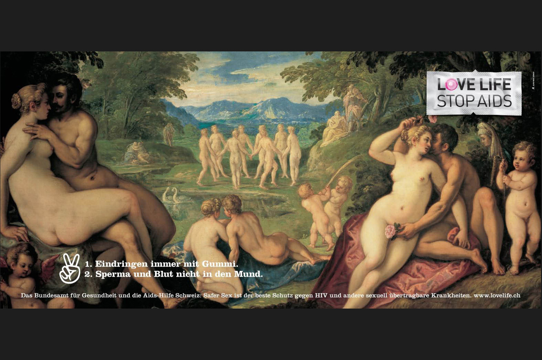 随着时间的推移和新疗法的出现,艾滋病的危险性已有所降低。而宣传战的主题也相应地进行了调整,传递的信号更加积极,涉及面广至所有性传播疾病。1987年的宣传口号“停止艾滋(Stop SIDA)”在2005年变成了“热爱生命、停止艾滋”,而该口号最后在2011年又被缩减成“热爱生命”。宣传有时颇为大胆,尺度较宽,并非合所有人的胃口。但联邦卫生局认为,“政府没有权力评判人们的性取向和性行为”,因此也没有必要在健康问题上大作道德文章。(图:联邦卫生局)