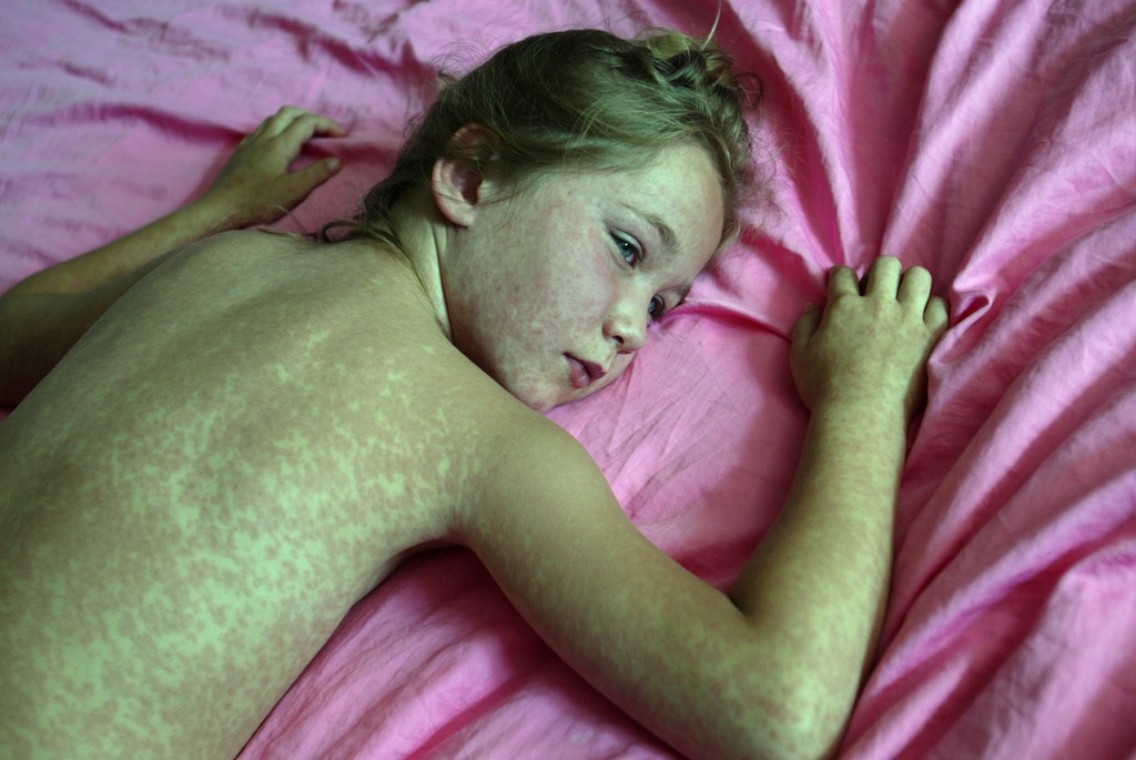 麻疹是一种传染性很高的病毒性疾病,主要染病人群为儿童。除了身体会出现大片红斑之外,还会出现发烧和全身各种功能都减退等症状,有些严重情况会出现威胁生命的并发症,如肺炎和大脑炎。(瑞士资讯swissinfo.ch及通讯社/图:Keystone)