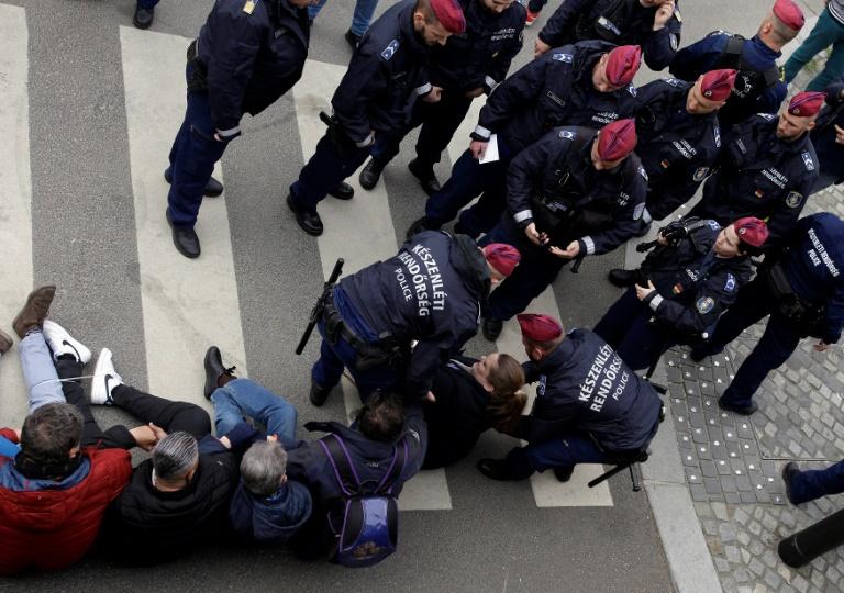 自由派在野党「动能党」(Momentum)政治人物在议场内拉开抗议布条,场外数百名民众则高喊「我们不会让自己变成蒲亭(Vladimir Putin,俄罗斯总统)统治下的俄罗斯」。