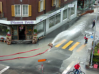 恩格堡的洪水(Engelberg) 以前 下一个 上瓦尔登半州的这个村庄在此次洪水中几乎与世隔绝。通往当地的铁路和公路交通均被破坏或阻塞。唯一与外界的交通工具只有村中这架紧急救援直升机了。军队的飞行员和私人直升机协会承担了食品及救援物资的运输。大约1500名铁力士山(Titlis)游客也被疏散。(报道:Mathias Froidevaux) swissinfo.ch 30-50名瑞士军队官兵参加了抢险。 swissinfo.ch 上百米的抽水管道将住宅中的积水抽出来。 swissinfo.ch 村中到处是禁止通行的禁令牌。 swissinfo.ch 每个路口均有紧急救护人员。 swissinfo.ch 不计其数的地窖灌满了水。 swissinfo.ch 火车站一瞥... swissinfo.ch 水,只要能看到的地方,随处都是。 swissinfo.ch 多座被毁桥梁中的一座。 swissinfo.ch 火车站地段是受灾最严重地区之一。 swissinfo.ch 铁力士山的交通同样被中断。 swissinfo.ch 图片1 图片2 图片3 图片4 图片5 图片6 图片7 图片8 图片9 图片10 图片11 此内容发布于 2005年08月26日 - 09:34 您可以在这里找到读者与我们记者团队正在讨论交流的话题。 请加入我们!如果您想就本文涉及的话题展开新的讨论,或者想向我们反映您发现的事实错误,请发邮件给我们:chinese@swissinfo.ch。