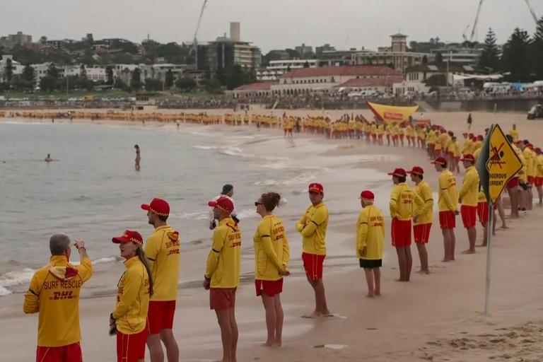 悼雪梨枪击案罹难者 澳洲救生员海滩默哀