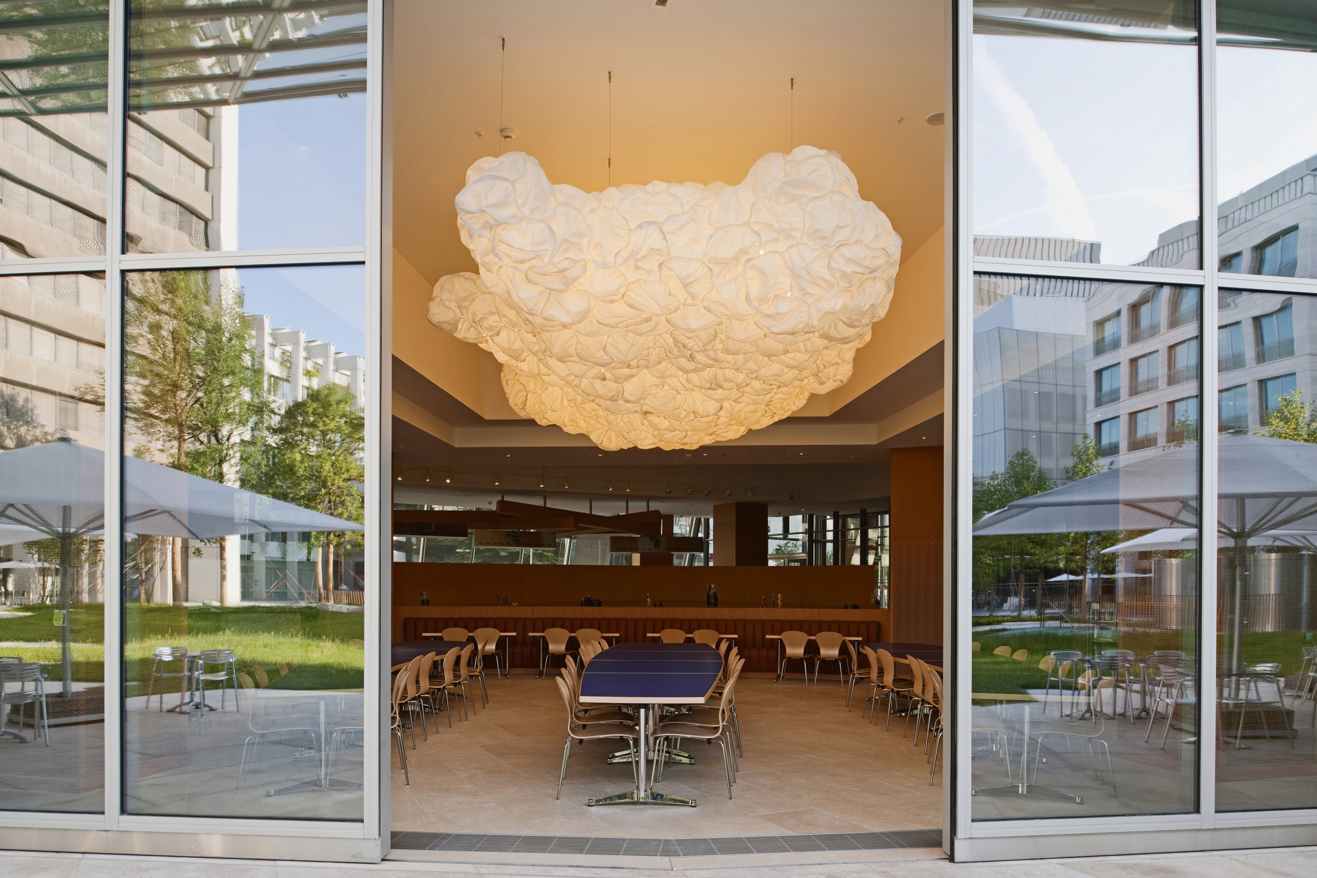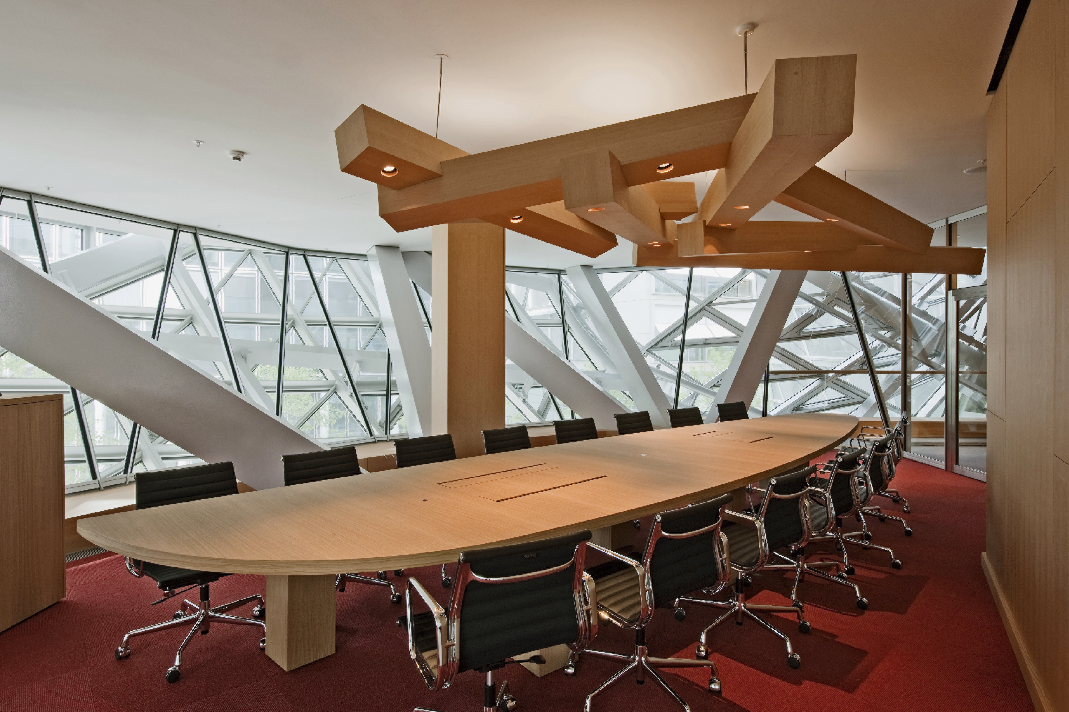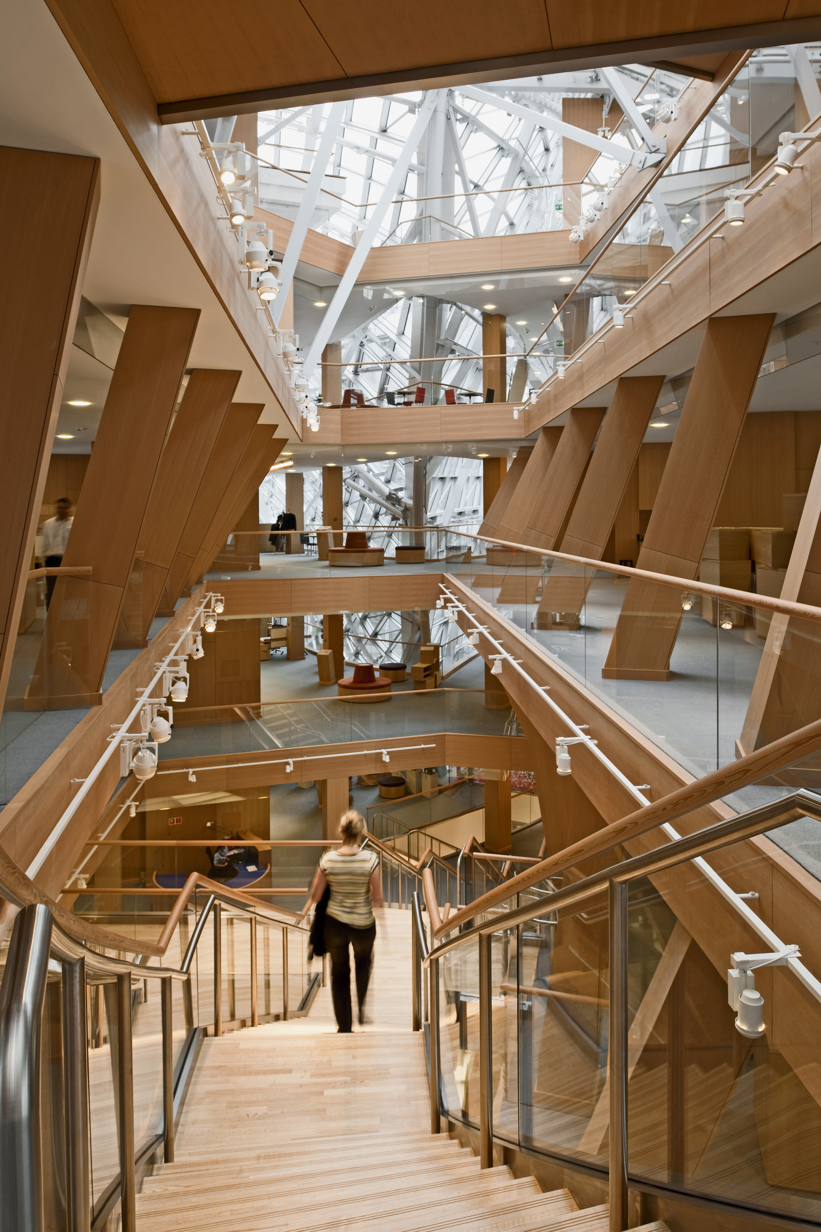 在引人注目的幕墙之内,是用钢材和玻璃组成的建筑结构,而木材是主体建材。这里是诺华人事部门工作的地方。会议室旁还有一个地下的视听礼堂,共设座位630个。还设有职工餐厅和酒吧。