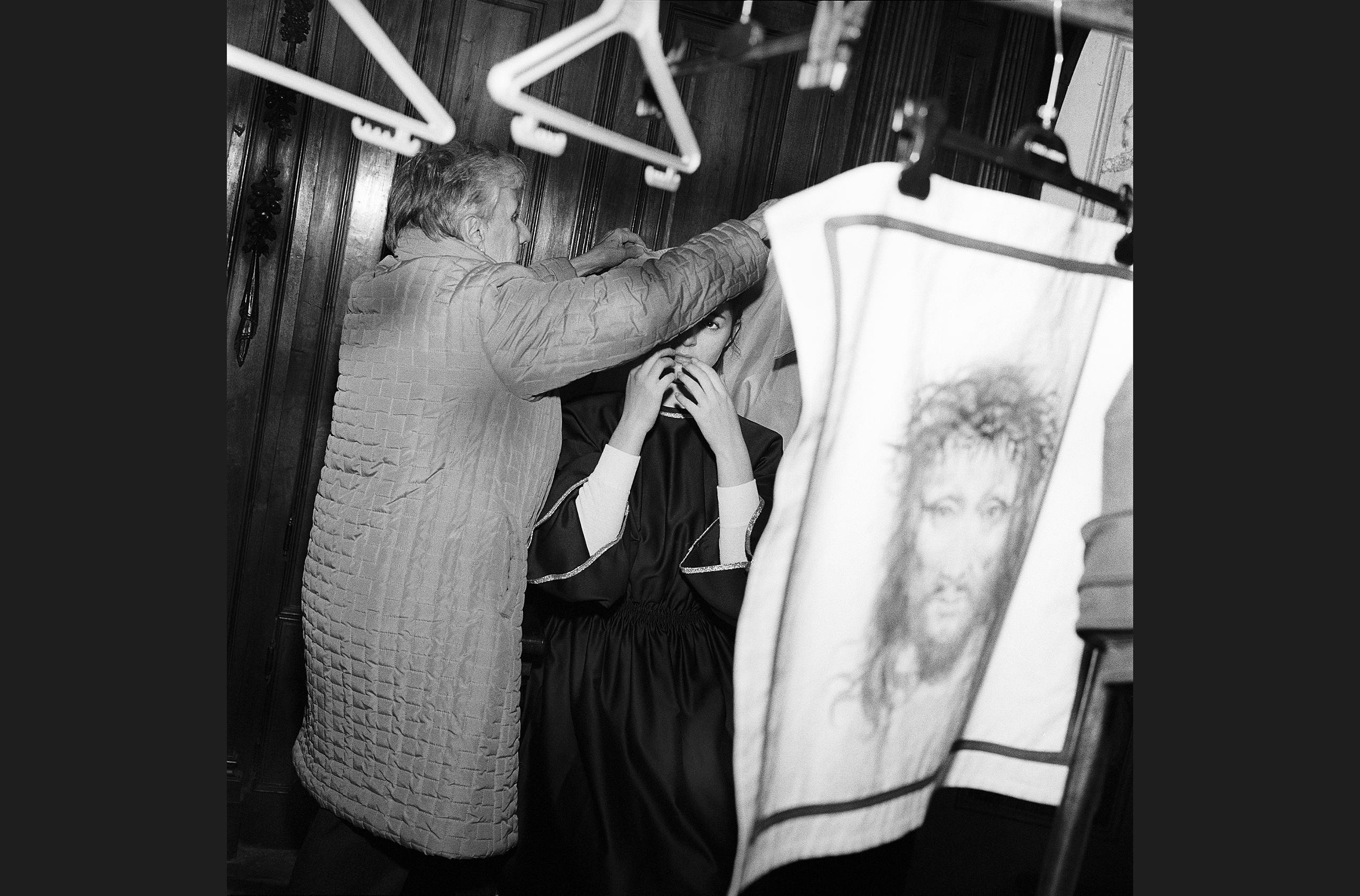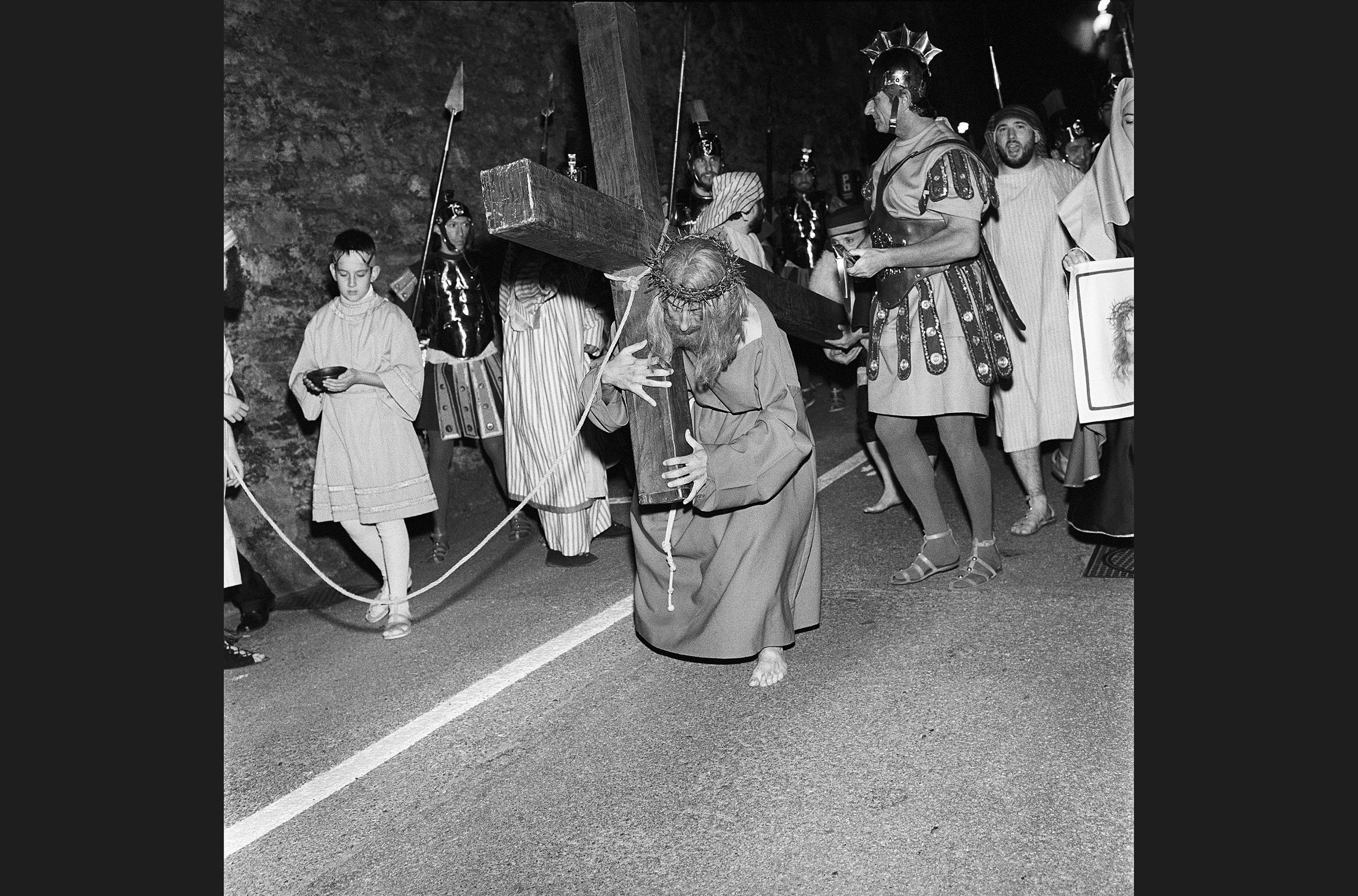 这样的故事和情感同样发生和感染着参加游行的其他人,激动和兴奋的气氛持续高涨,每个细节都要经过仔细检查,无论是三位玛丽亚(圣母玛丽亚、玛丽亚玛达肋纳、贝瑟尼的玛丽亚)还是涂了指甲的维罗妮卡。Simone von Cyrene 解释说:“我们必须要像2000年前的人那样。”这个有些紧张的男孩子担心地说:“我希望自己不会笑出声。”