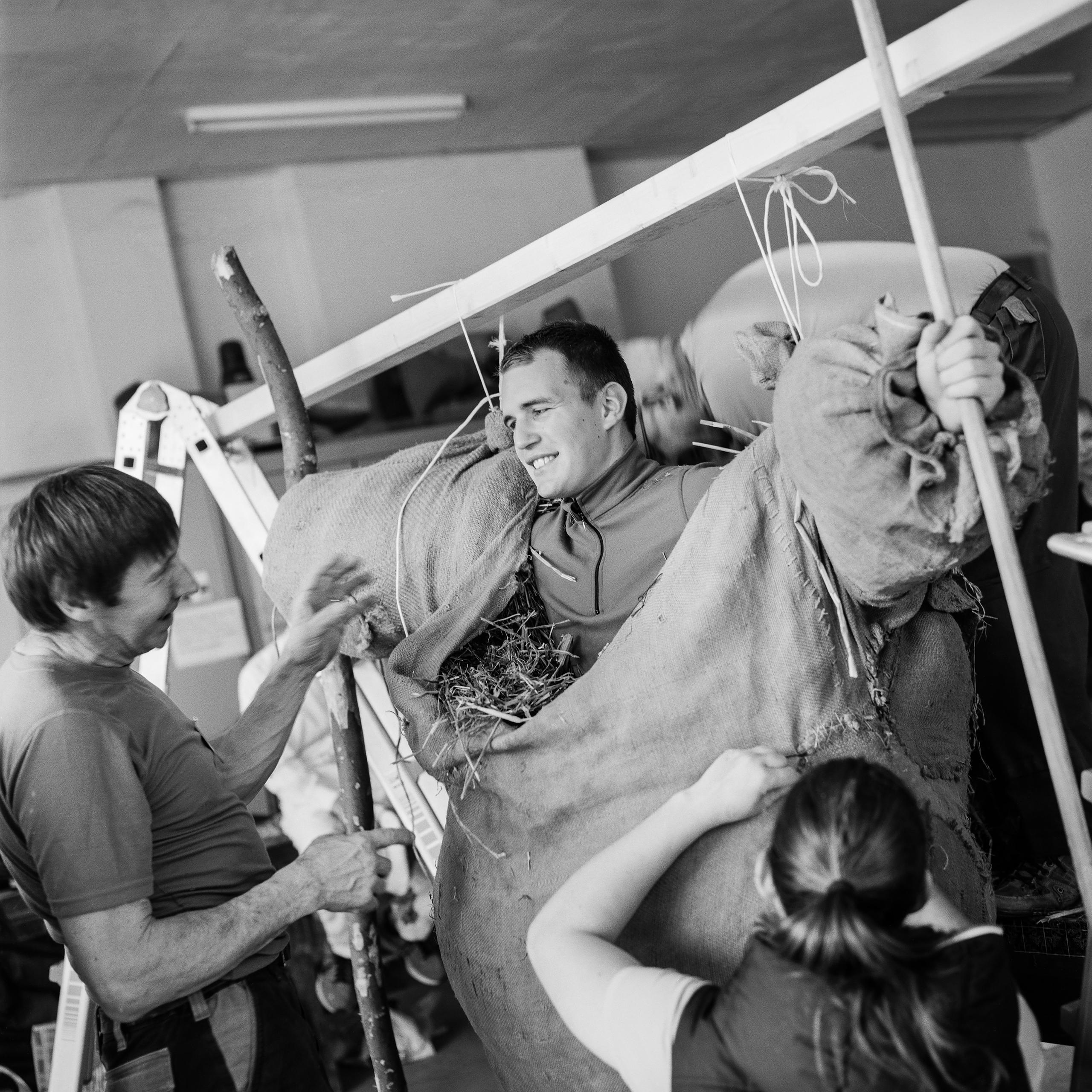 筹备工作在之前几周就已经开始了,各种服装被从储藏室翻出来,修改肥瘦大小,有些装束必须穿在身上缝制。稻草人要被塞满30公斤干稻草。