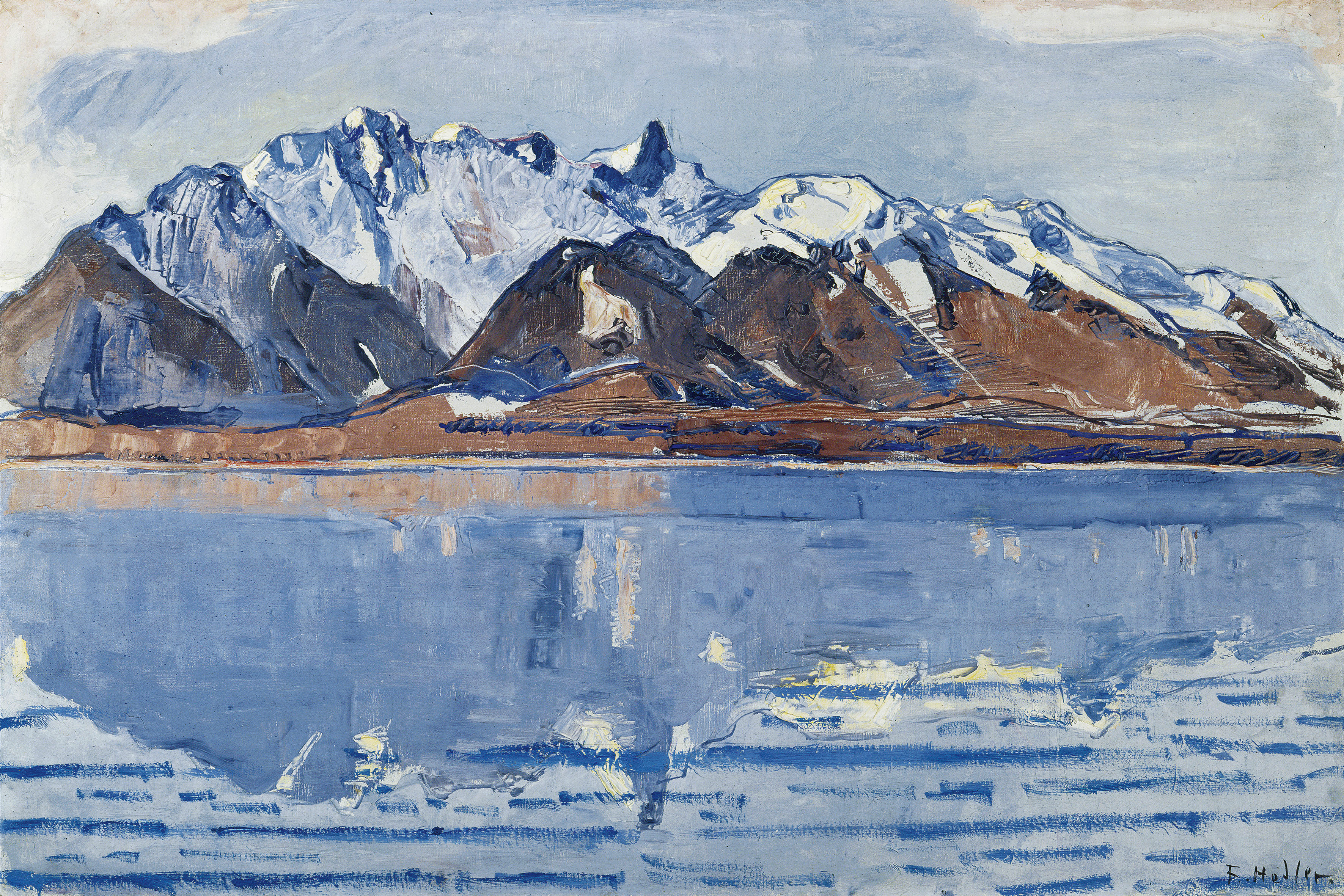 “费迪南德·霍德勒晚期作品的灵感源于自然,源于人类和谐于自然、友爱与兄弟的愿望。”-Jura Brüschweiler,《霍德勒和瑞士人》(Hodler et les Suisses),Pecel Art出版社,1991年。