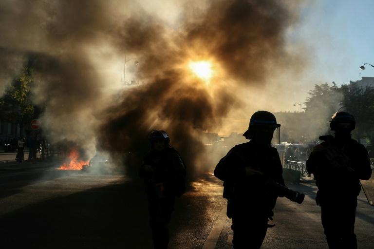 当局在全国部署约8万名警力因应。在首都巴黎及周边地区,抗议民众一大早就用垃圾桶筑起路障、封锁学校与道路,并朝员警扔掷垃圾。
