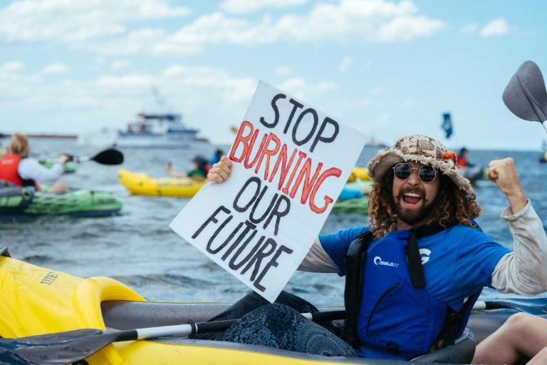主办这次抗议活动的团体「涨潮」(Rising Tide)表示,在本周末抗议期间,数支由小艇组成的船队驶入航道,迫使两艘运煤船转向,未能进入港口。