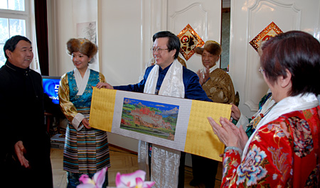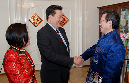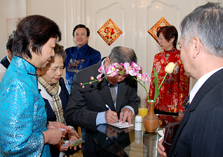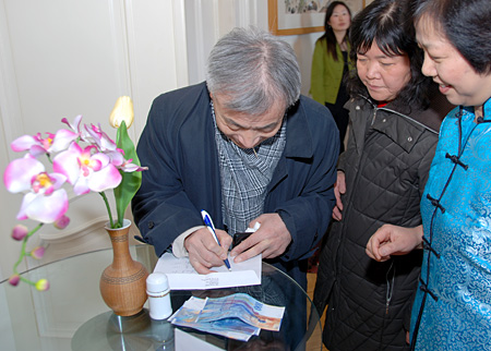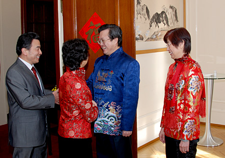 瑞士政治 2008华人华侨春节招待会 以前 下一个 2008年2月3日,中国驻瑞士大使朱邦造及夫人陈立春在伯尔尼大使馆举办了“2008年华人华侨春节招待会”。中国大使馆门前,首先迎接客人的是5个奥运吉祥物福娃。(图/文:瑞士资讯swissinfo 邵大海) swissinfo.ch 中国驻瑞士大使朱邦造携夫人陈立春在门口迎接应邀出席招待会的瑞士华人华侨及外国友人 swissinfo.ch 华人华侨与朱大使及夫人相互致意 swissinfo.ch 中国大使馆钱佩珍参赞(中)及领事部王海娟主任(右)向客人们表示感谢和新年问候 swissinfo.ch 王海娟主任向客人们表示欢迎 swissinfo.ch 大使馆为客人们准备了各式各样的饮料 swissinfo.ch 好久不见,一向可好 swissinfo.ch 朱邦造大使代表中国大使馆发表讲话:首先祝大家节日快乐,吉祥如意,身体健康,阖家幸福! 同时也告诉大家,他即将于三月份离任,感谢瑞士的华人华侨多年对使馆工作的支持。 swissinfo.ch 朱邦造大使在讲话中告诉大家,中国目前南方大部分地区遭受了60年来罕见的冰雪灾害,波及18个省,175万人紧急转移,直接经济损失达538亿人民币。他希望广大旅瑞侨胞对遭受雨雪冰冻灾害地区给予关注和捐助。 swissinfo.ch 2008年,藏历新年与中国传统春节巧合在同一时间。中国驻瑞士大使馆因此邀请了西藏代表团的艺术家们为今年的华人华侨招待会助兴。 swissinfo.ch 西藏艺术家们的表演吸引了所有的客人 swissinfo.ch 一曲高亢的《青藏高原》赢得了在场客人们热烈的掌声 swissinfo.ch 西藏代表团为朱邦造及夫人敬献了哈达和礼物 swissinfo.ch 为帮助中国受冰雪灾害地区,许多瑞士华人华侨纷纷捐款。中国大使馆今天共收到瑞士华人华侨捐款5400瑞士法郎。 swissinfo.ch 瑞士潮州同乡会为灾区捐款2000瑞士法郎 swissinfo.ch 个人捐款400瑞郎 swissinfo.ch 招待会期间,中国驻瑞士大使馆为客人们准备了丰盛了午餐 swissinfo.ch 中国的饮食文化着实名不虚传 swissinfo.ch 得知朱邦造大使即将离任,华人华侨们纷纷与其合影留念。 swissinfo.ch 瑞士潮州同乡会代表们与朱邦造大使合影留念。 swissinfo.ch 瑞士各地华人华侨与朱邦造及使馆工作人员一起合影。 swissinfo.ch 瑞士各地华人华侨与朱邦造及使馆工作人员一起合影。 swissinfo.ch 这样的机会可能不多了。 swissinfo.ch 朱大使保重。朱邦造大使与客人们告别并相互道以良好的祝愿。 swissinfo.ch 图片1 图片2 图片3 图片4 图片5 图片6 图片7 图片8 图片9 图片10 图片11 图片12 图片13 图片14 图片15 图片16 图片17 图片18 图片19 图片20 图片21 图片22 图片23 图片24 2008年2月3日,中国驻瑞士大使馆举办华人华侨春节招待会。(组图) 此内容发布于 2008年02月03日 - 22:42 您可以在这里找到读者与我们记者团队正在讨论交流的话题。 请加入我们!如果您想就本文涉及的话题展开新的讨论,或者想向我们反映您发现的事实错误,请发邮件给我们:chinese@swissinfo.ch。