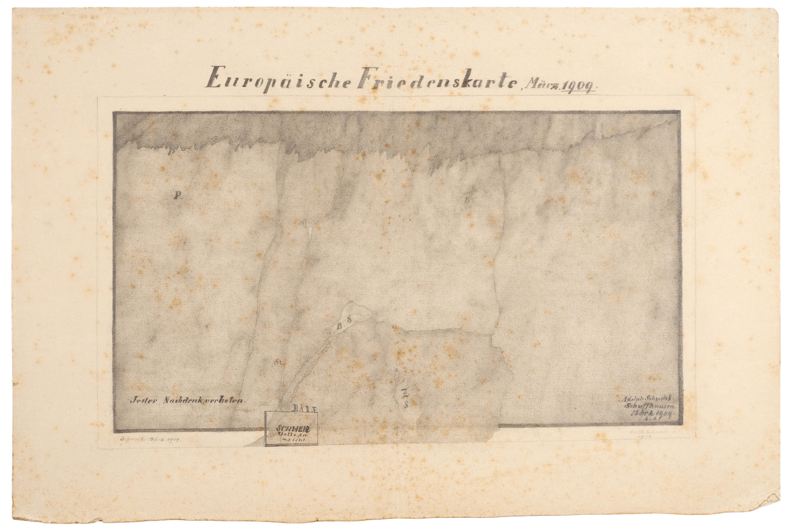 Adolph Schudel,«欧洲和平地图»,纸上铅笔画,29,2 x 44 cm,1909年3月,Breitenau收藏,© Staatsarchiv Schaffhausen