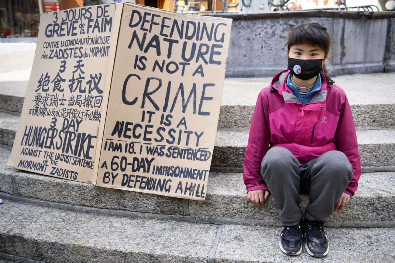 2年后的今天欧泓奕站在了洛桑市中心的正义喷泉下面,进行绝食抗议。在一位网上结识的瑞士气候活跃分子朋友的帮助下,她来到了瑞士,并参与了这里的各种环保活动,也跟瑞士司法扯上了关系。