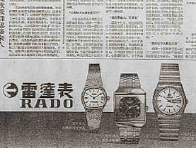 日前,swissinfo的记者采访了当时第一个在中国广告市场通过大众传媒做广告的外国品牌,总部位于“表谷”比尔(Biel)辐射区朗格诺(Lengnau)的“雷达表集团”(Rado Watch GA)。