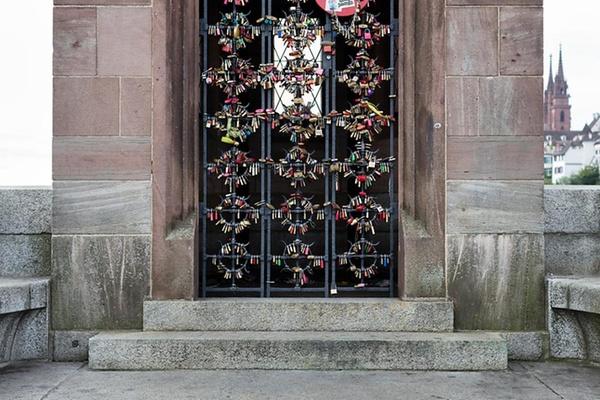 瑞士名城巴塞尔位于莱茵河畔,城中有一座横跨莱茵河的大桥,名叫中桥(Mittlere Brücke),这座桥中间部位的桥墩上建有一座小教堂,名叫Käppelijoch。这原本也并不稀奇,而特别之处在于教堂的栅栏门上挂满了同心锁。