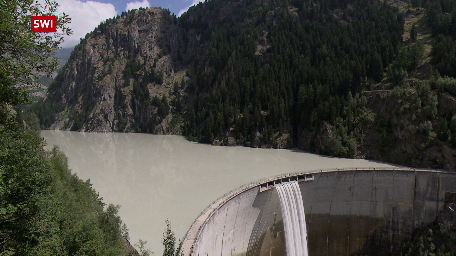 虽然今年夏天部分阿尔卑斯山地区大坝水库的水位大大降低,但其他水库却出奇地满,水多得甚至要溢出来,特别是那些位于融化冰川之下的水库。瓦莱州122米高的格比登(Gebidem)大坝周围环绕着茂密的松树,欧洲最大的阿莱奇(Aletsch)冰川的蓝色冰融水汇入大坝水库,水库容量超过920万立方米,相当于4’000个奥林匹克游泳池那么大。