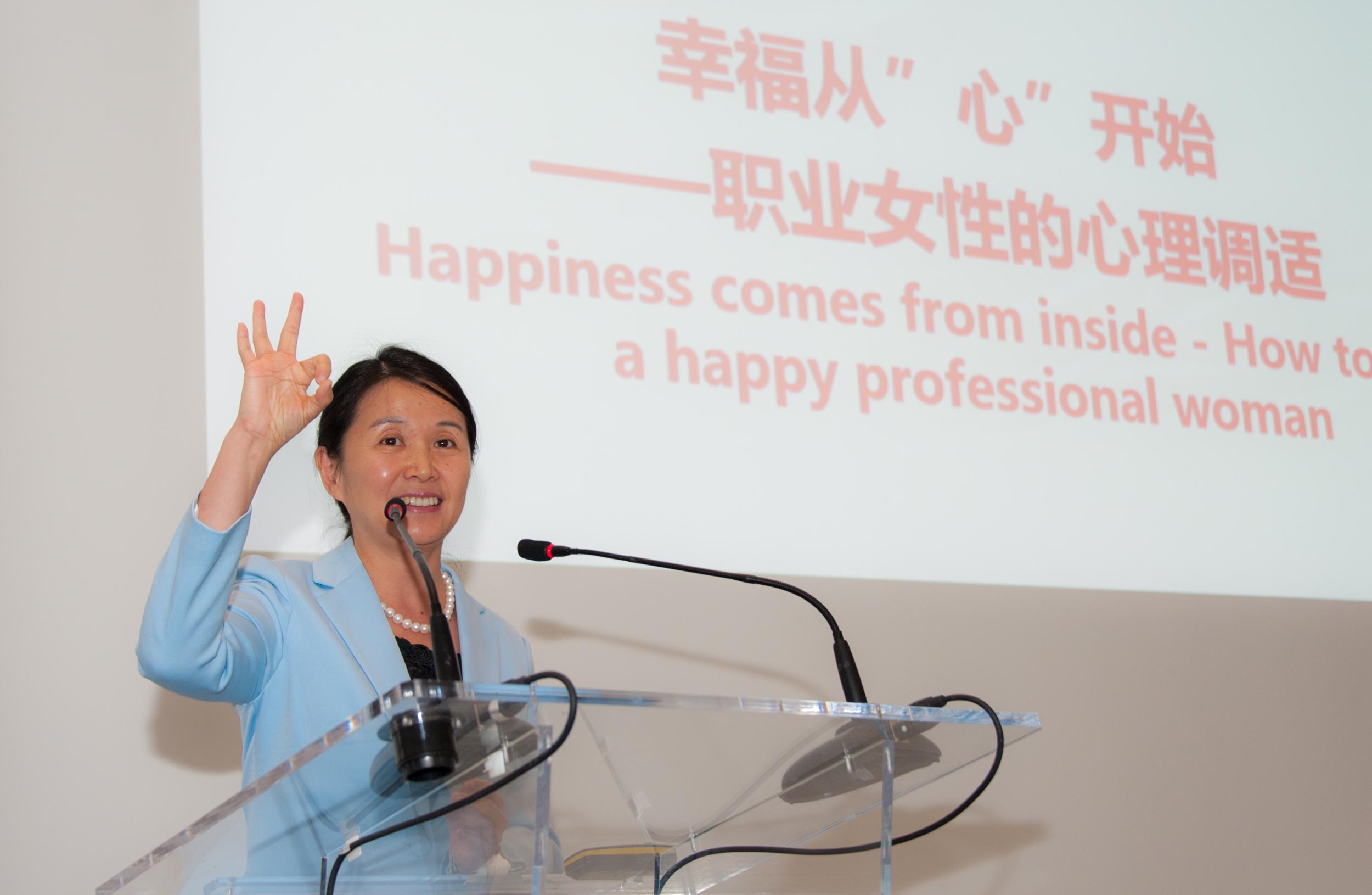 首届瑞中妇女论坛主题:超越文化,共赢未来,杰出女性,领军风采。邀请了包括瑞士国务秘书、中国驻瑞士大使、以及“非诚勿扰”黄菡老师在内的多位瑞中知名人士发表演讲。黄菡老师讲演的主题是《职业女性的心理调适》。博得了观众热烈的掌声。