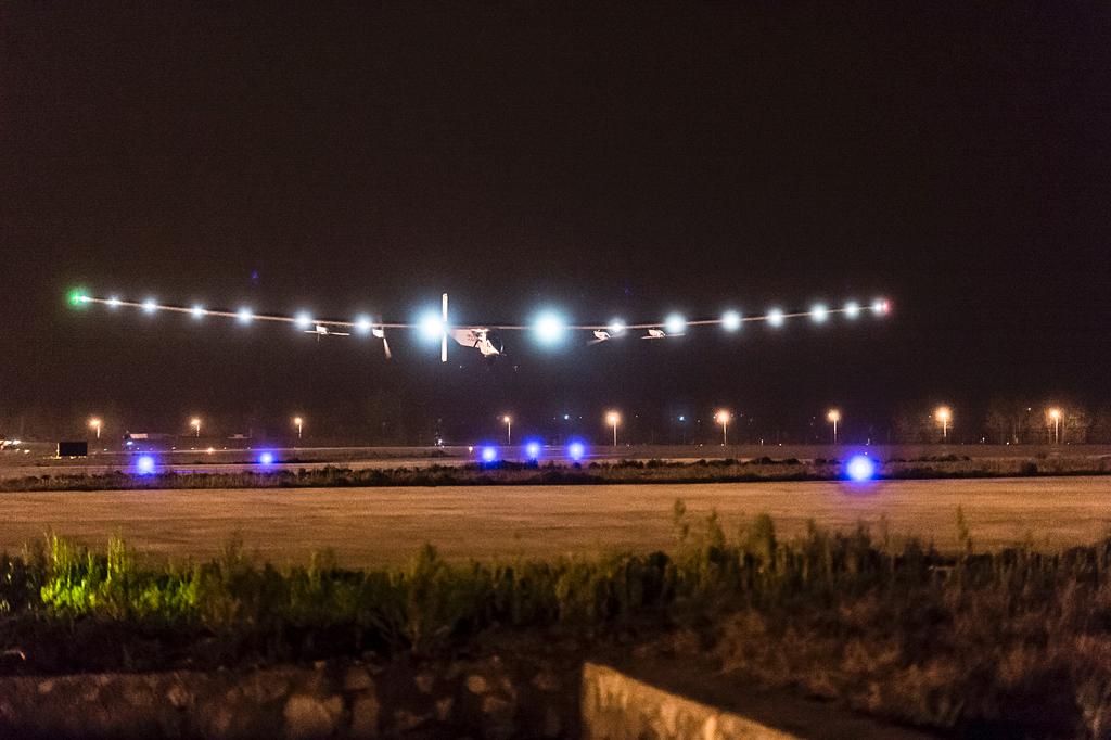地面上上百名中外记者手举相机、手机仰望着天空期待着它的降落,空中的贝特朗·皮卡尔(Bertrand Piccard)驾驶着阳光动力2号(英)外部链接在空中盘旋出一曲曲优美的圆舞,渴望着投入大地的怀抱。