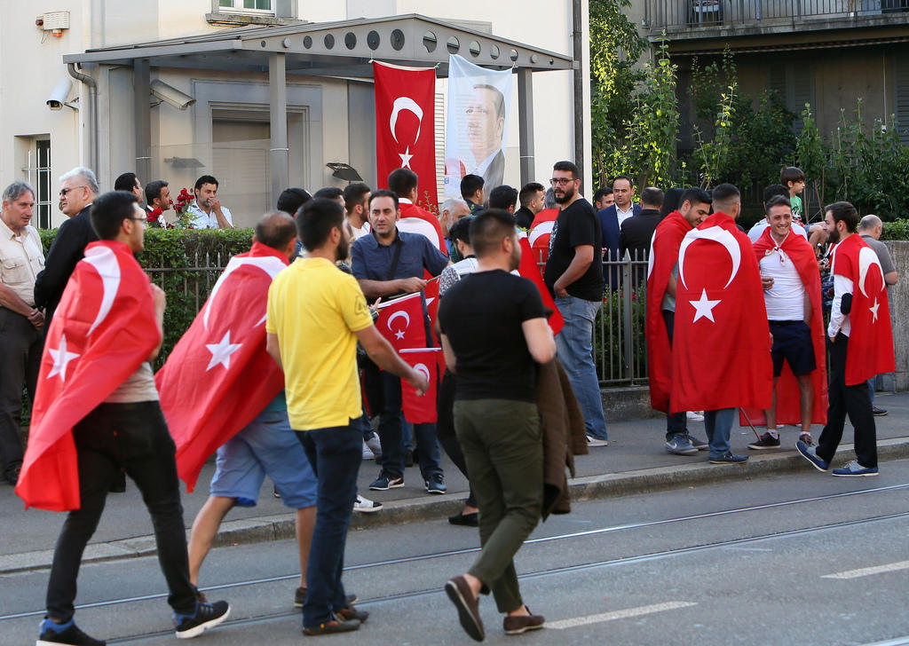 在苏黎世土耳其领事馆前,上周末一些埃尔多安的支持者走上了街头,欢庆平定政变。关于这个小型的游行,瑞士警方的评论是“平静的进行”,地方媒体也未做特殊报道。