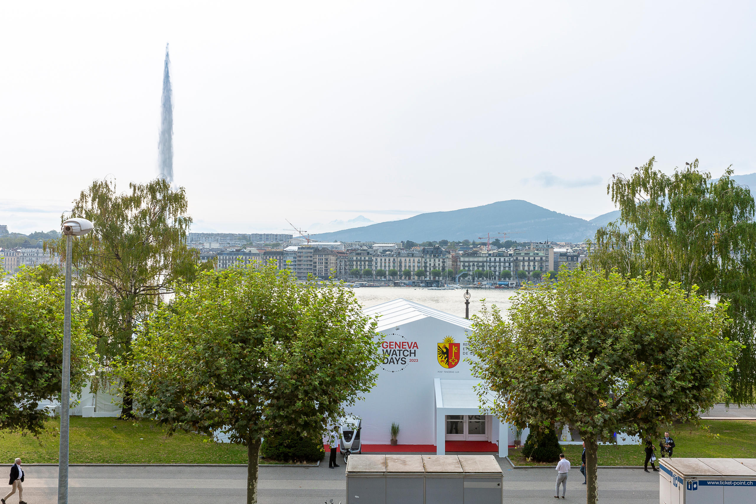 毗鄰日內瓦噴泉的白色展館再次成為鐘錶節的活動中心。開幕式、記者會、座談會以及拍賣會都在此舉行。這裡也是新款腕錶的展示舞台。