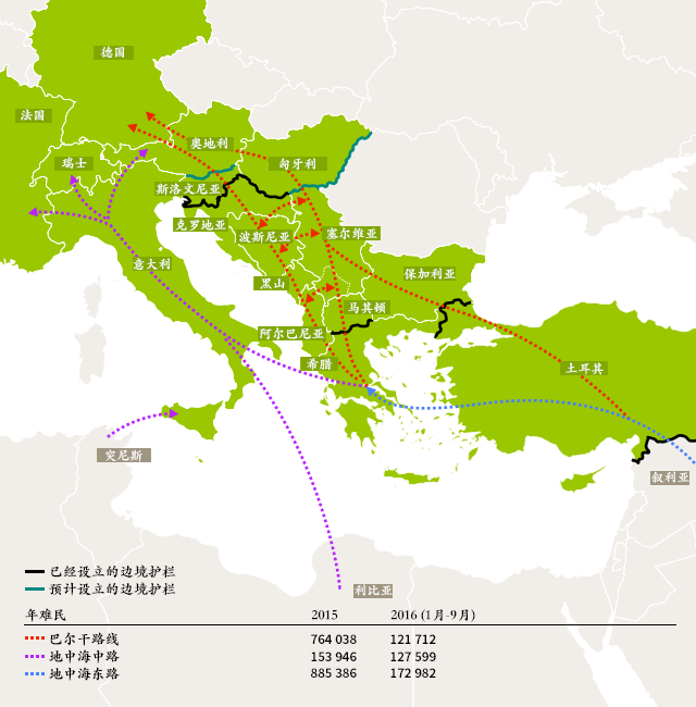 移民局官员指出,2016年申请数出现减少是由于巴尔干移民路线被关闭,而且许多难民的目的地并不是瑞士。