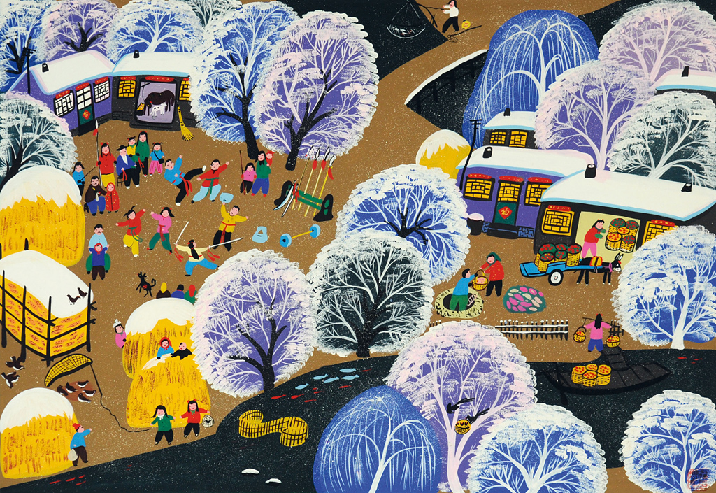 而策展人于好说:“中国农民画的色彩浓烈,冲击力很强。这也反应出他们生活的状态。这些画的主题多是自己的生活、梦想和田园”。