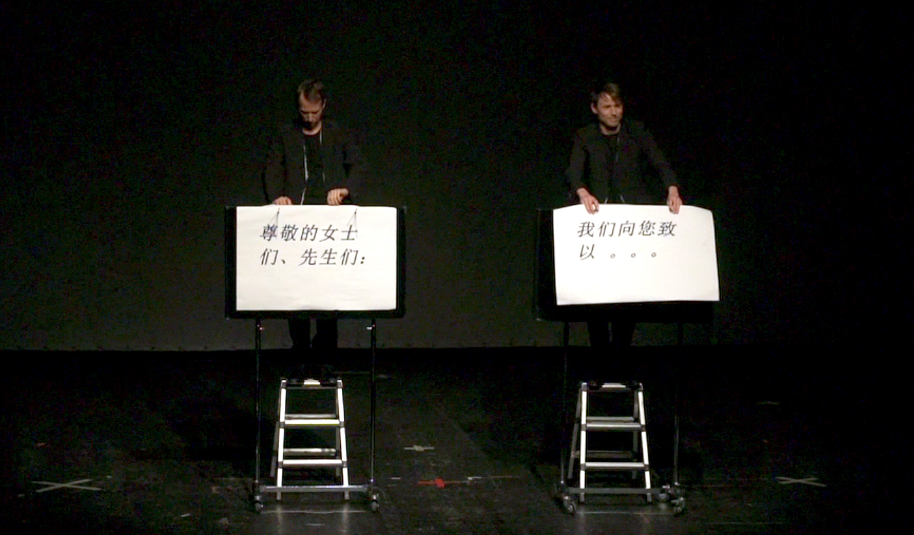 ”尽管在舞台上,甚至在接受瑞士电视台SRF采访时,克里斯托夫和约纳斯都没有说过一个字,但他们对语言的追求,却臻于极致。在与中国翻译讨论时,他们纠结于“第1875行”,是用“该”,还是“想”,对于完全看不懂汉字的人来说,在雷同的原稿和修改稿之间要找到区别,有时无异于在玩儿“找差异游戏”(Finde die Fehler)。面对一行一行反复纠正、在考虑是否将“中国面条”改成“兰州拉面”的哥俩儿,瑞士资讯的记者问到:“你们是不是很担心你们在中国的演出?”约纳斯说:“不,我们只是尽力做到完美”,“我们是完美主义者,”克里斯托夫说。难怪瑞士文化基金会会选择他们,作为瑞士在国际青年戏剧节的代表。
