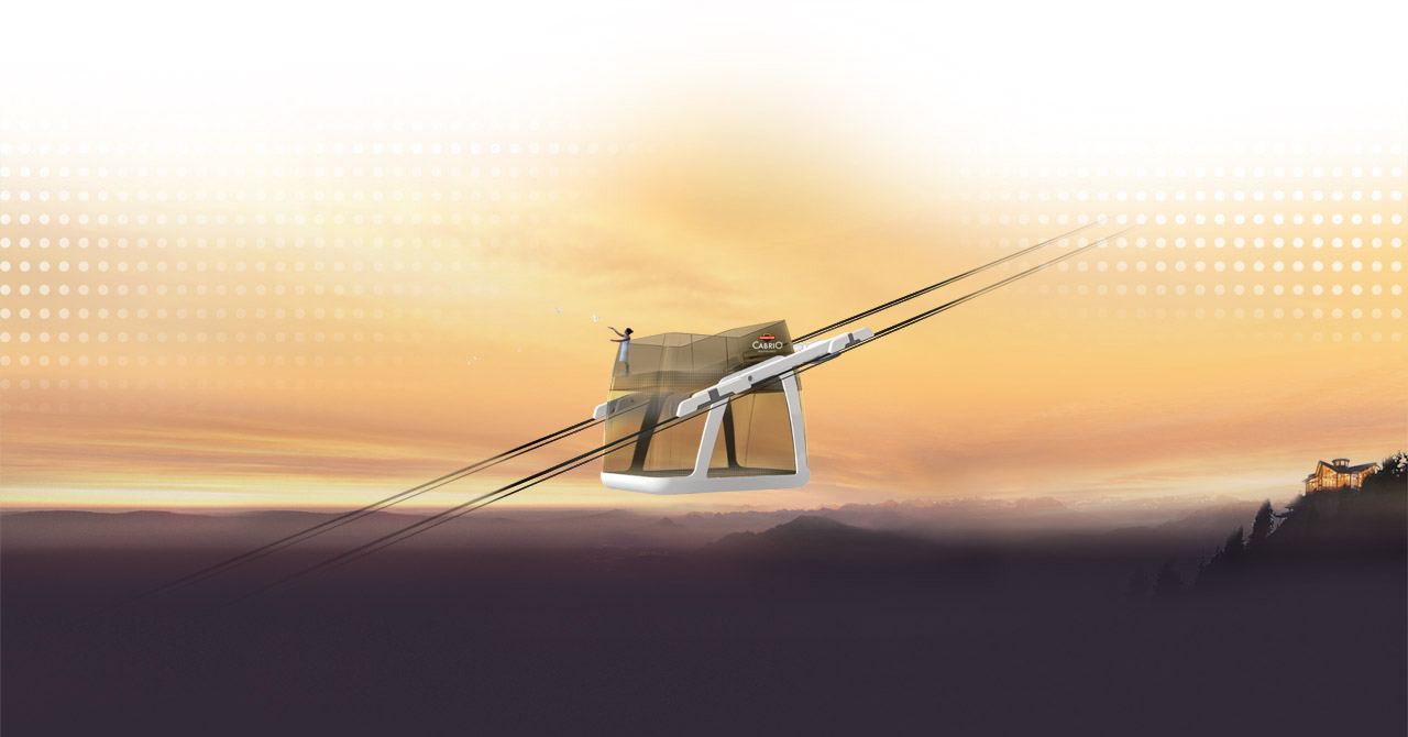 因为缆车要露天,所以传统的在缆车顶端挂缆线的常规技术就不管用了,这也为缆车公司Garaventa出了难题。最后的解决办法是,在车厢两侧挂上了承重缆。为了保持缆车的匀速行驶,还配装了2只液压缸。
