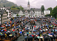 格拉鲁斯公民丝毫不顾恶劣的天气,在大雨中激烈地讨论了一个小时。