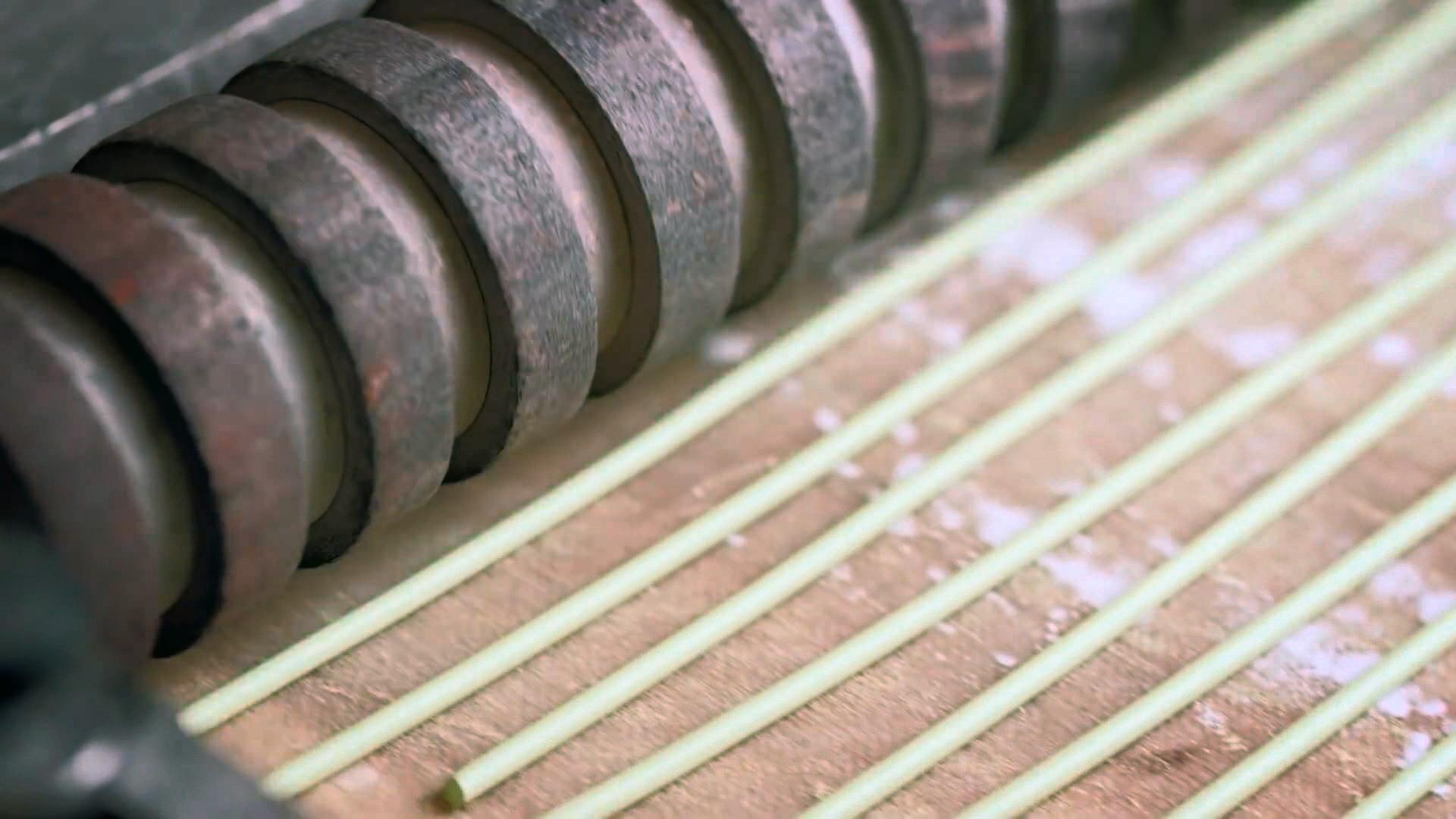 在工厂另一端,我看到一个容器里盛满了“紫色的面条”-是凯兰帝为了开发彩笔的新颜色试制时剩下的。只要凯兰帝决定开发一个新色系,那么投入生产的效率是很高的。在我作为瑞士资讯swissinfo.ch的记者访问期间,他们正在生产巨量柠檬绿的铅笔芯,够用好几年的。