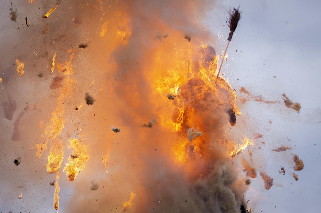 到了1892年,上述两种传统融为一体,便形成了如今的六鸣节仪式。焚烧雪人成为仪式不可或缺的环节。勃哥雪人被安置在10米高的木头堆上,18点整被准时点燃。届时,大约3500名行会成员穿着传统服装前来助阵。马术师也会骑着坐骑围着燃烧的雪人环跑-直到勃哥脑袋爆炸的压轴时刻。