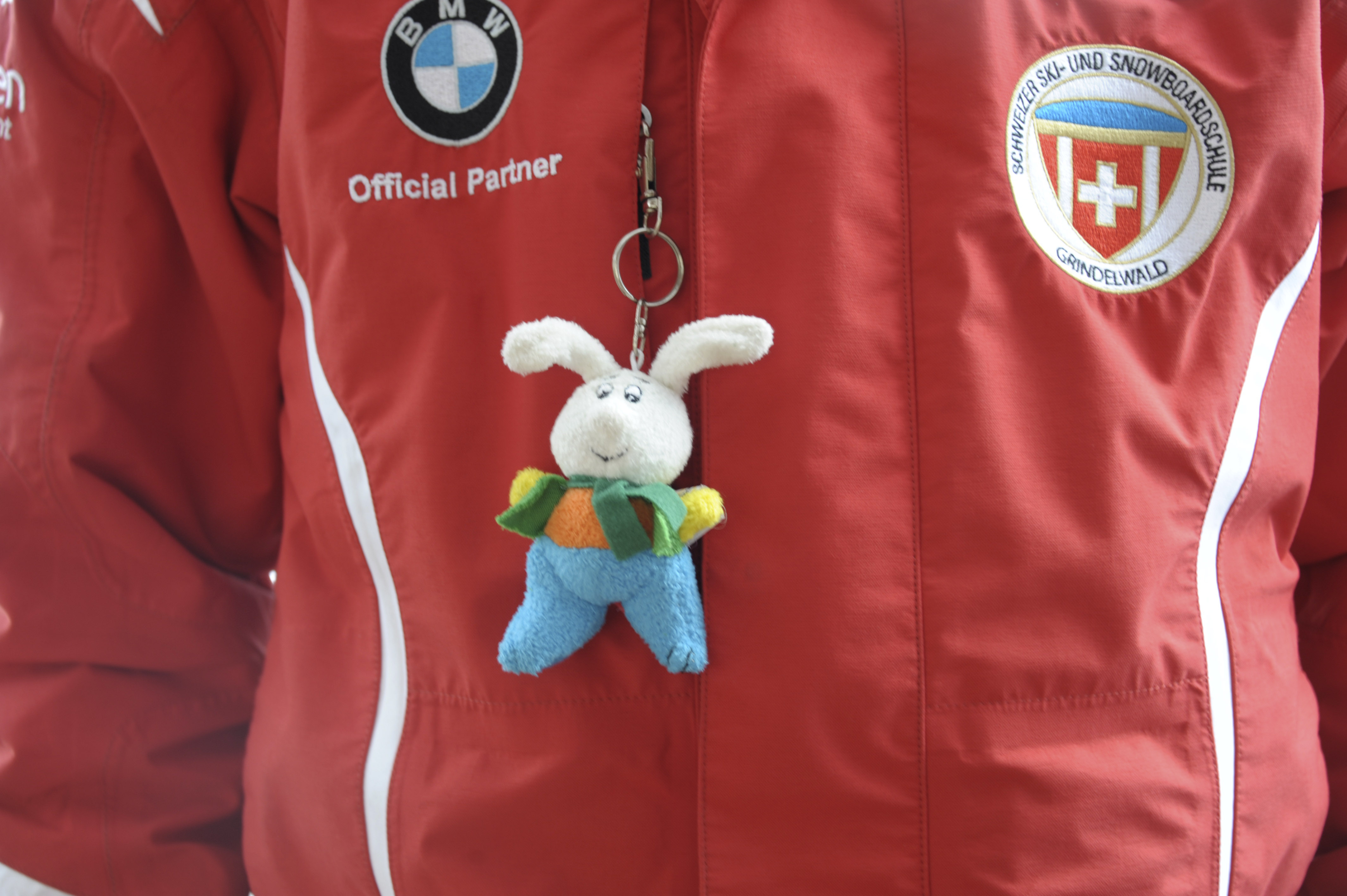 在与徐忠星聊天中,记者注意到他身上带着一只彩色的小兔子,好奇地问他是什么吉祥物,小徐说,它叫Snowli,是为儿童滑雪教学专门设计的,最初在圣莫里茨培训的时候,就学到了在这里教学就很讲究方式方法。与中国不同,因为孩子们对技术上东西不是很容易接受,所以就选择做游戏、讲故事的方法。